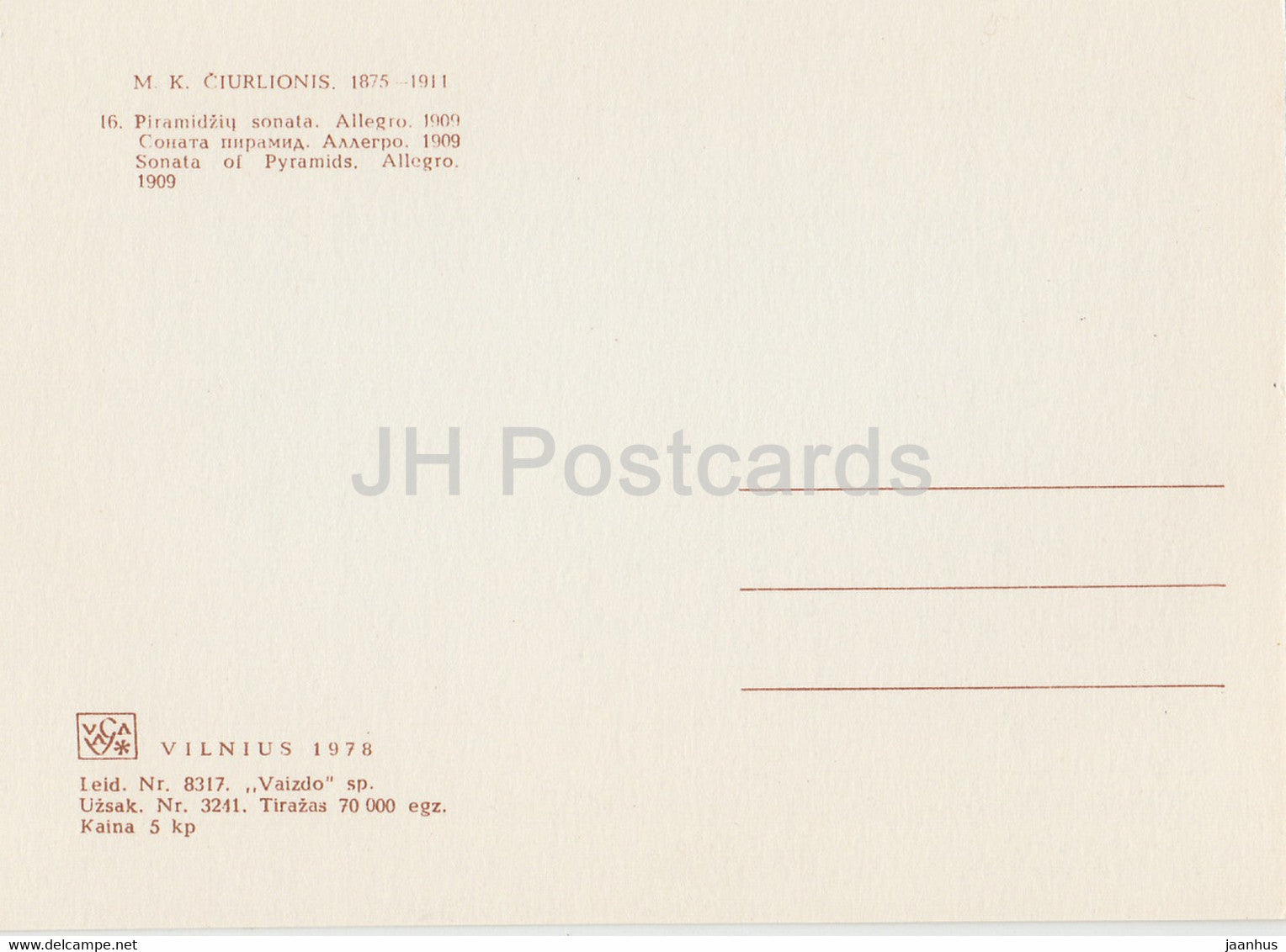painting by M. Ciurlionis - Sonata of Pyramids . Allegro - Lithuanian art - 1978 - Lithuania USSR - unused