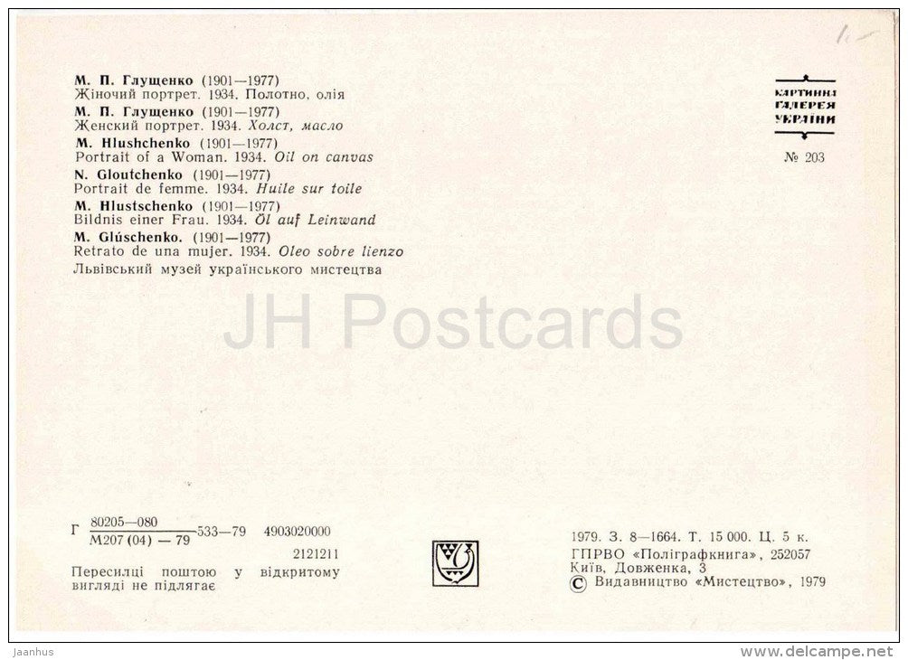painting by M. Hlushchenko - Portrait of a woman , 1934 - ukrainian art - unused