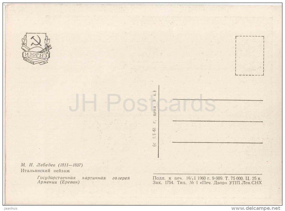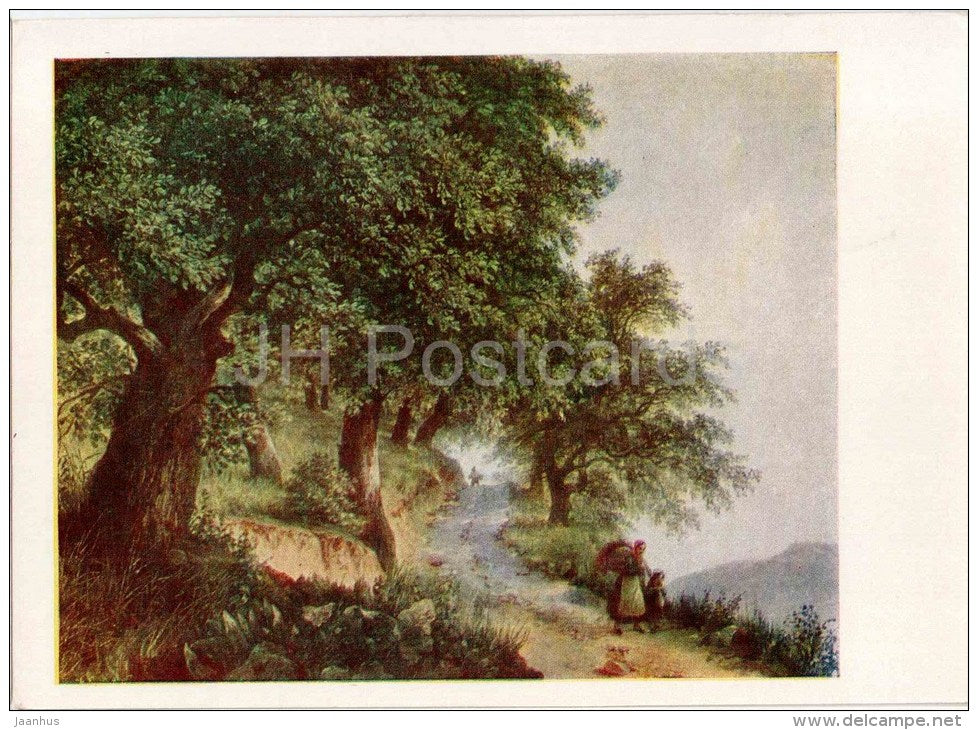 painting by M. Lebedev - Italian Landscape - mother and girl - russian art - unused