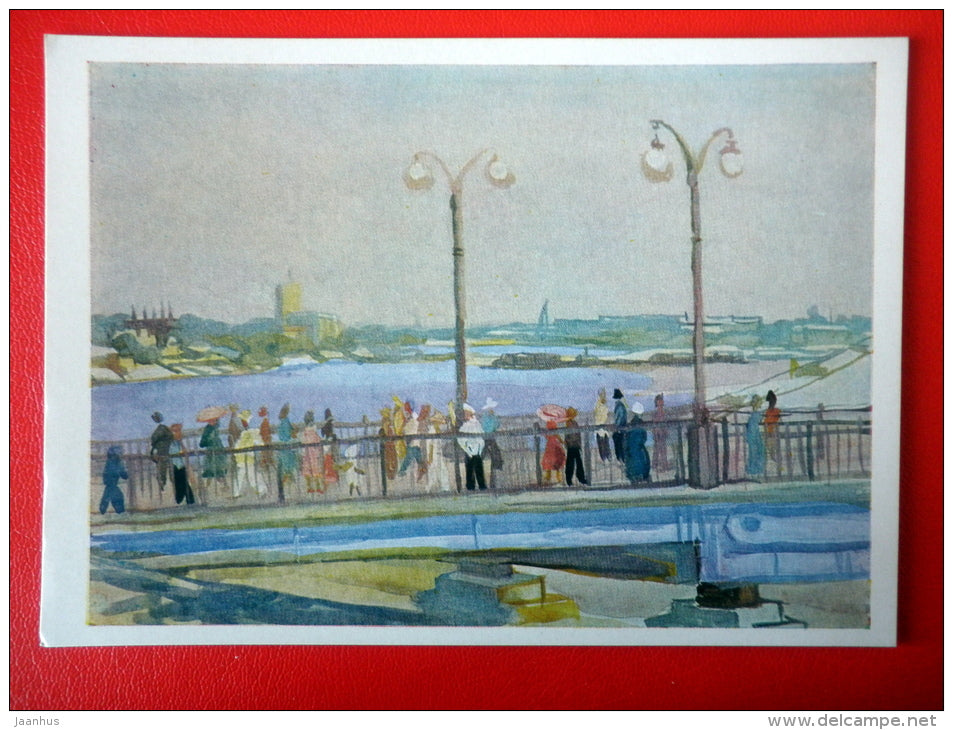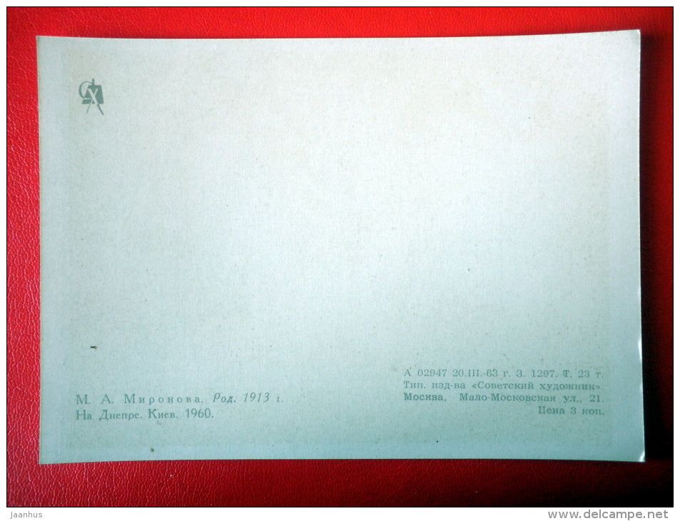 painting by M. Mironova . On the Dnieper river . Kiev , 1960 - bridge - ukrainian art - unused