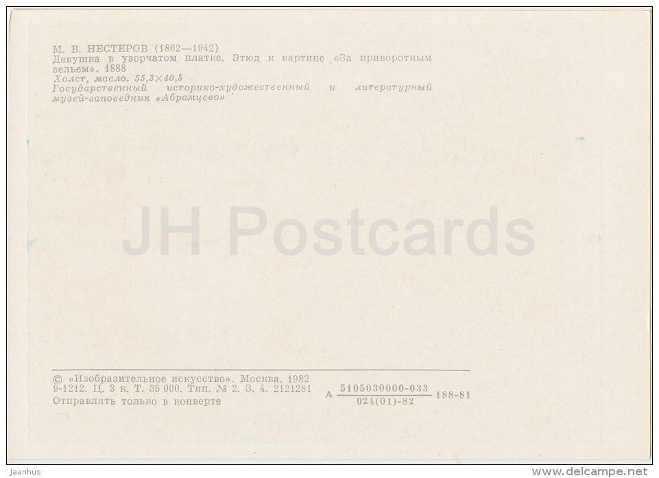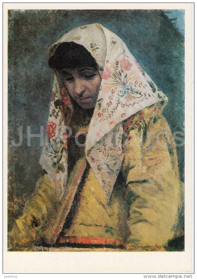 painting by M. Nesterov - Girl in an ornate scarf , 1888 - Russian art - Russia USSR - 1982 - unused