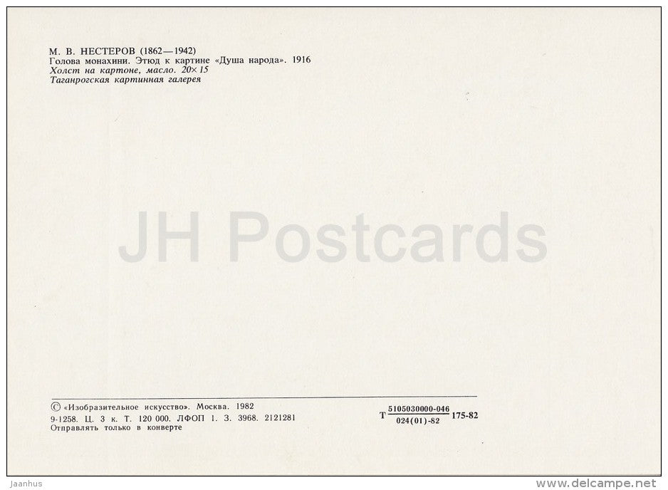 painting by M. Nesterov - Nun , 1916 - woman - Russian art - Russia USSR - 1982 - unused