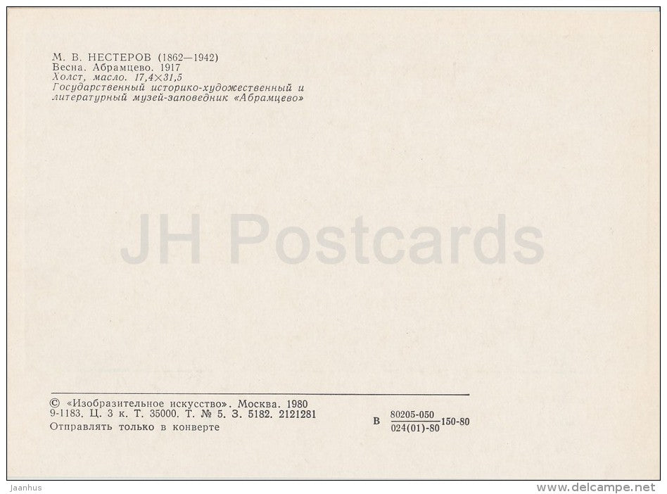 painting by M. Nesterov - Spring in Abramtsevo , 1917 - Russian art - 1980 - Russia USSR - unused