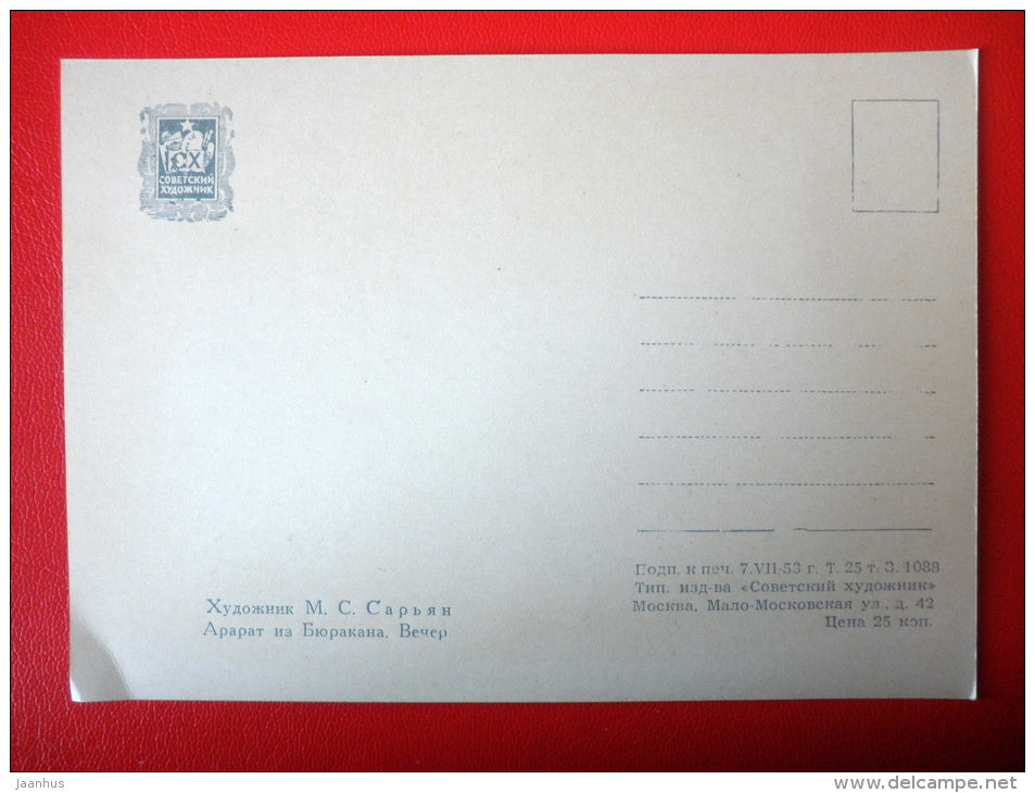 painting by M. Saryan . Ararat from Byurakana . Evening - mountain - armenian art - unused