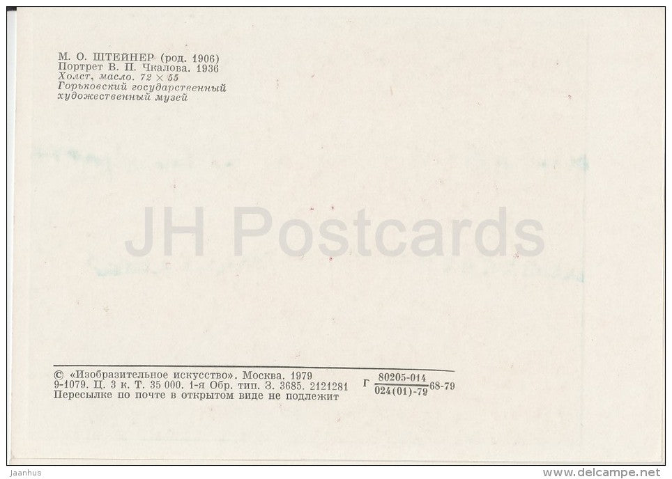 painting by M. Steiner - Portrait of Soviet Pilot V. Chkalov , 1936 - Russian art - Russia USSR - 1979 - unused