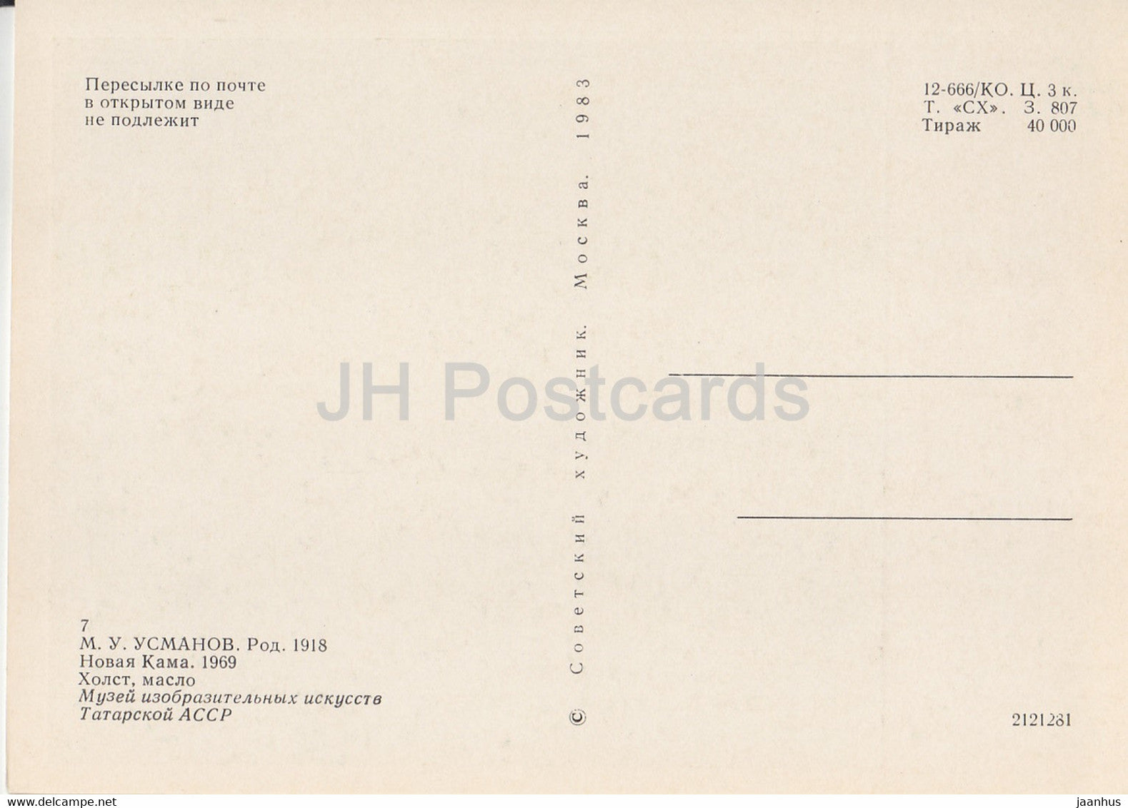 painting by M. Usmanov - Novaya Kama - oil - Tatar Russian art - 1983 - Russia USSR - unused
