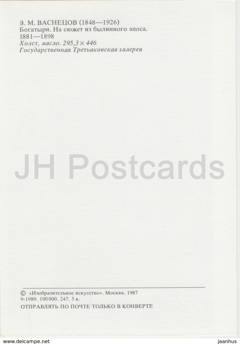 painting by M. Vasnetsov - Heroes - Bogatyri - horse - Russian art - 1987 - Russia USSR - unused