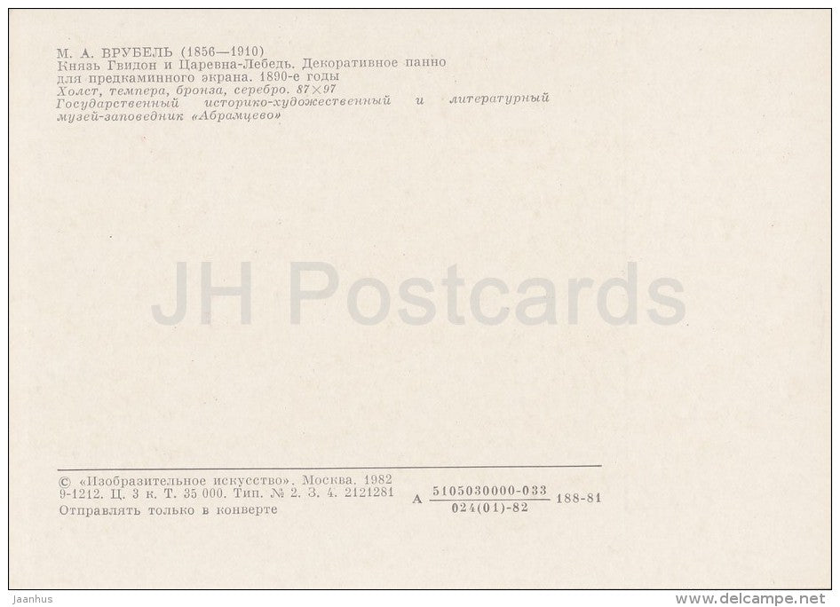 painting by M. Vrubel - Prince Gvidon and Princess Swan , 1890s - Russian art - Russia USSR - 1982 - unused