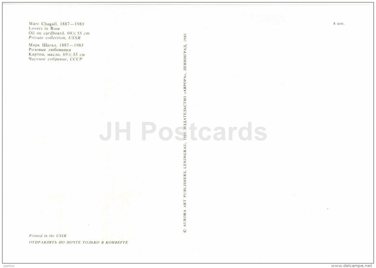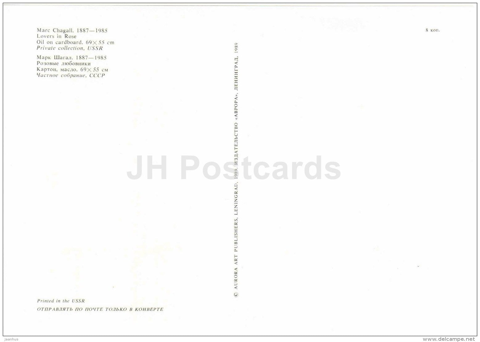painting by Marc Chagall - Lovers in Rose - art - large format card - 1989 - Russia USSR - unused