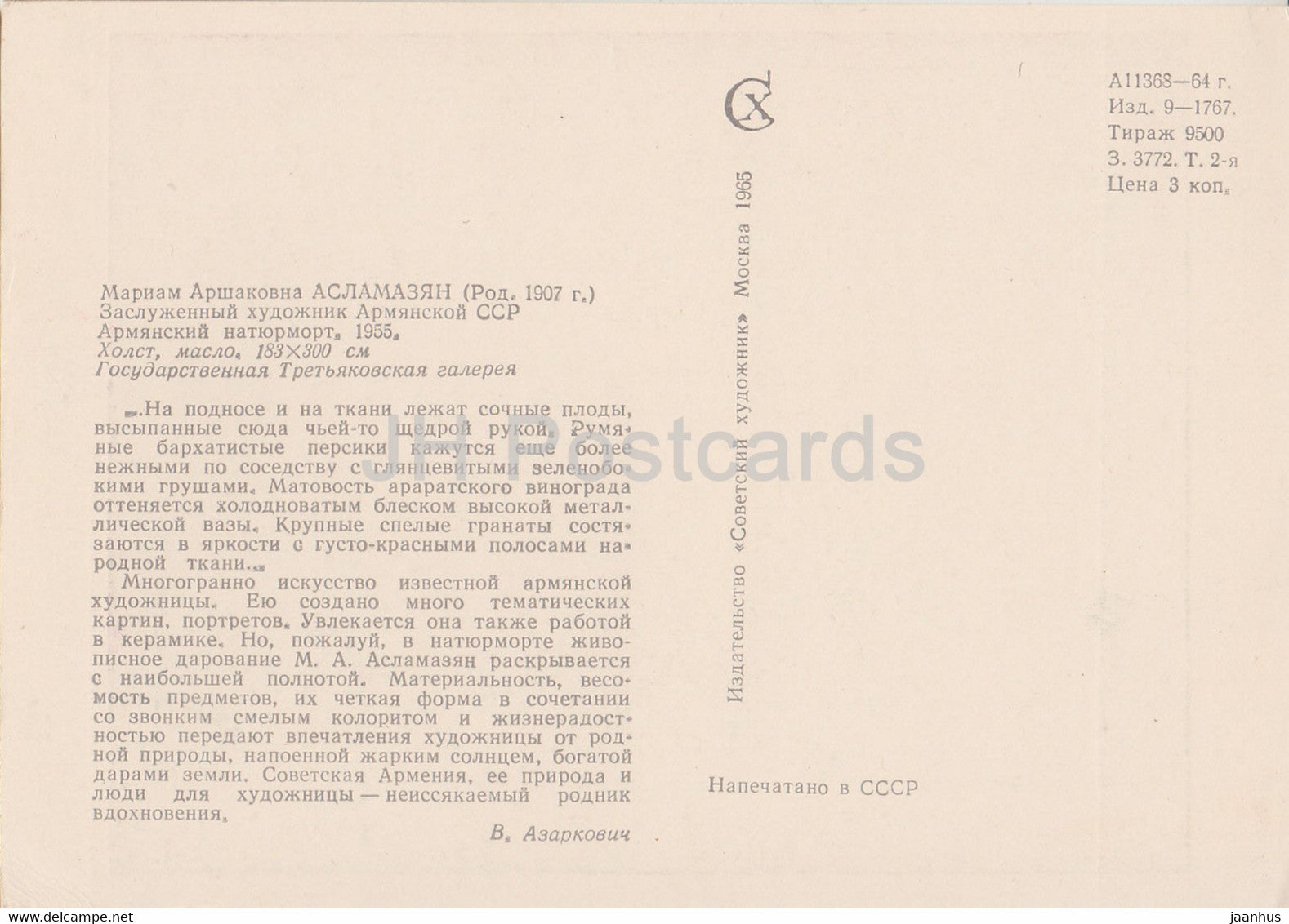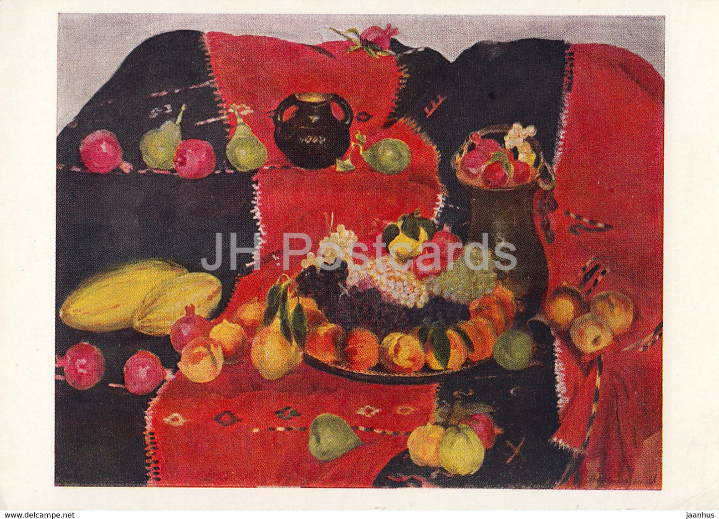 painting by Mariam Aslamazyan - Armenian Still Life - fruits - Armenian art - 1965 - Russia USSR - unused