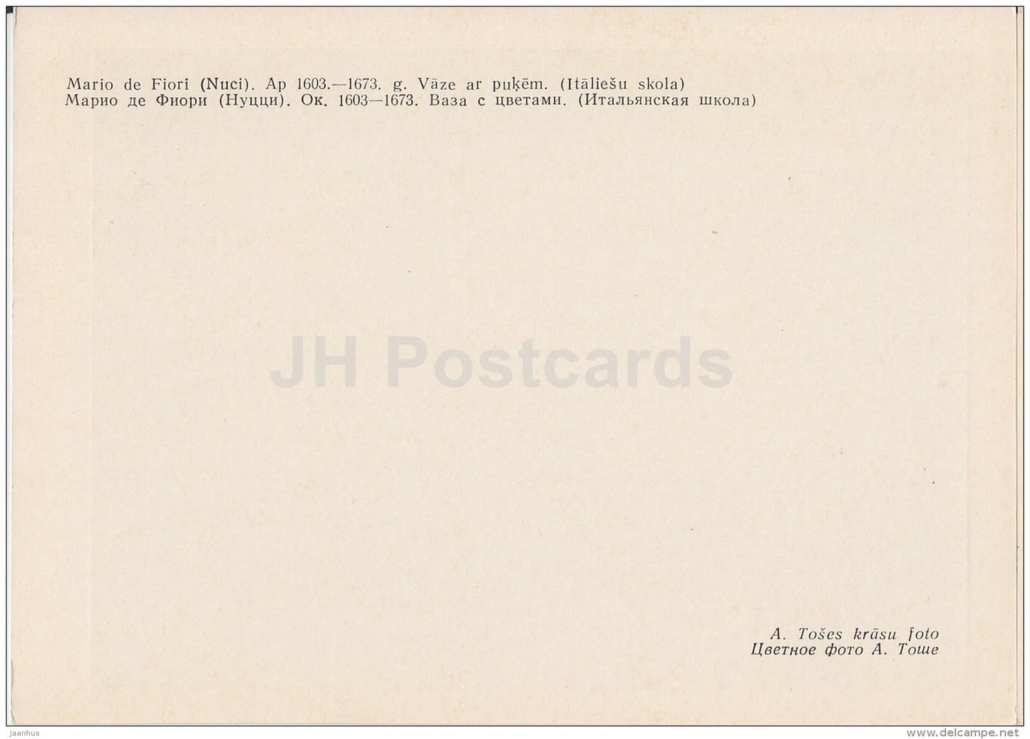 painting by Mario de Fiori (Nuci) - Vase with Flowers - Italian art - 1973 - Russia USSR - unused