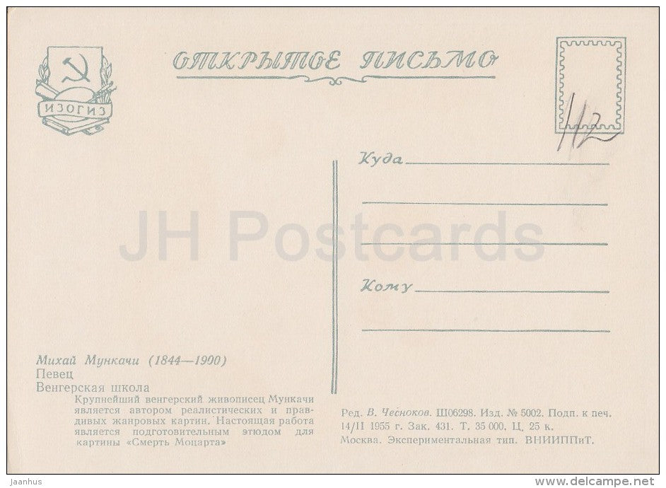 painting by Mihaly Munkacsy - The Singer - French art - 1955 - Russia USSR - unused