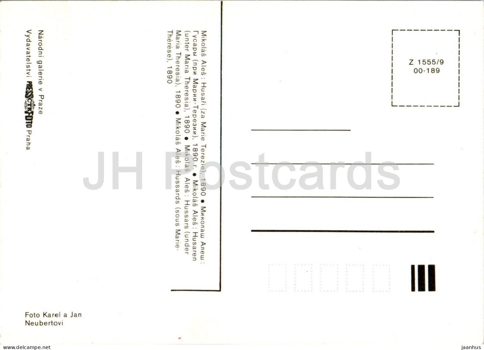 painting by Mikolas Ales - Hussars under Maria Theresia - horse - Czech art - Czech Republic - Czechoslovakia - unused