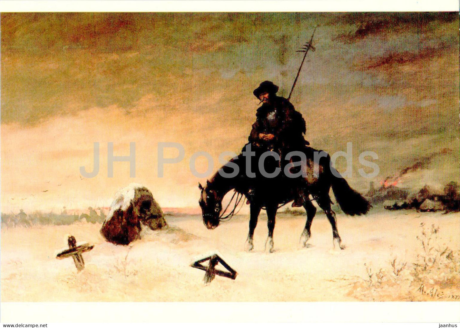 painting by Mikolas Ales - Hussite on the Baltic - horse - Czech art - Czech Republic - Czechoslovakia - unused