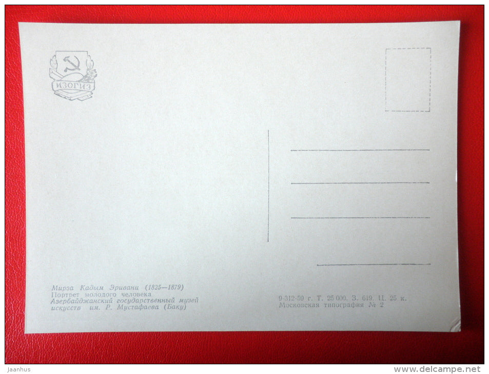 painting by Mirza Gadym Erivani . Portrait of Young Man - azerbaijan art - unused