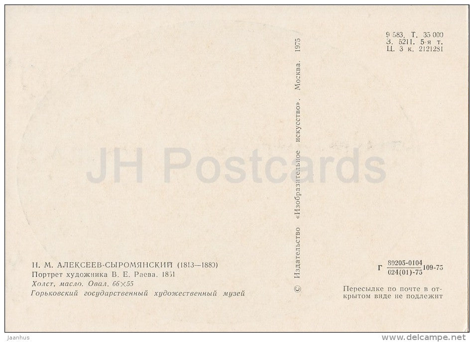 painting by N. Alekseev-Syromyansky - Portrait of Artist V. Rayev , 1851 - Russian art - 1975 - Russia USSR - unused