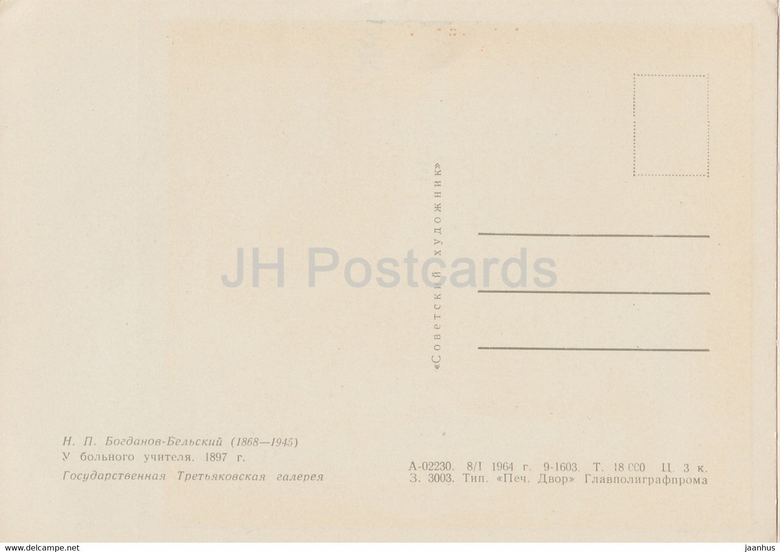 painting by N Bogdanov Belsky - A sick teacher - Russian art - 1964 - Russia USSR - unused