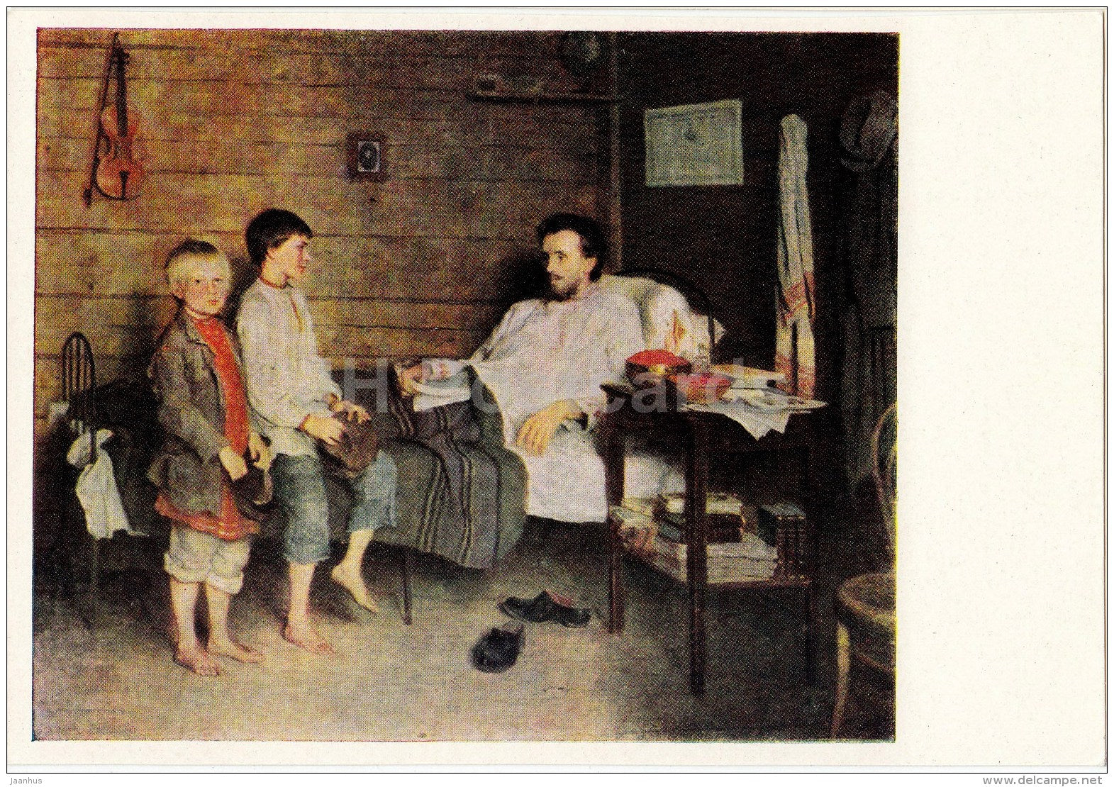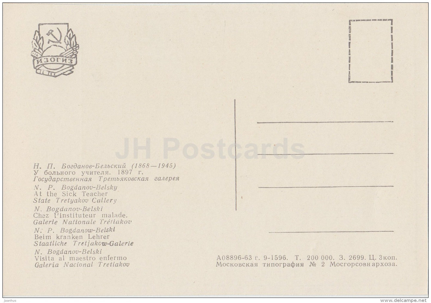 painting by N. Bogdanov-Belsky - At the sick teacher , 1897 - children - 1963 - Russia USSR - unused