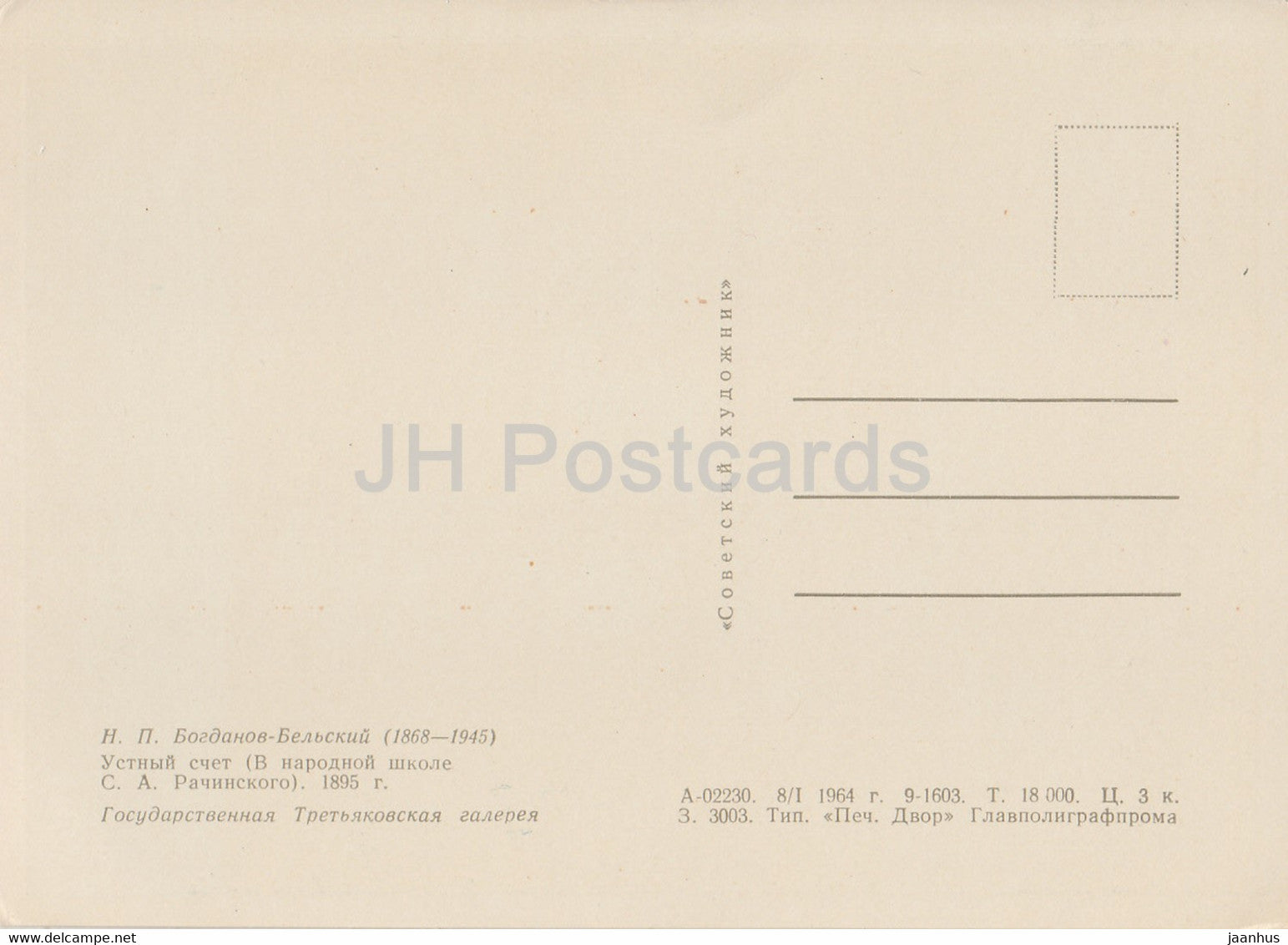 painting by N Bogdanov Belsky - Calculating - School - Children - Russian art - 1964 - Russia USSR - unused