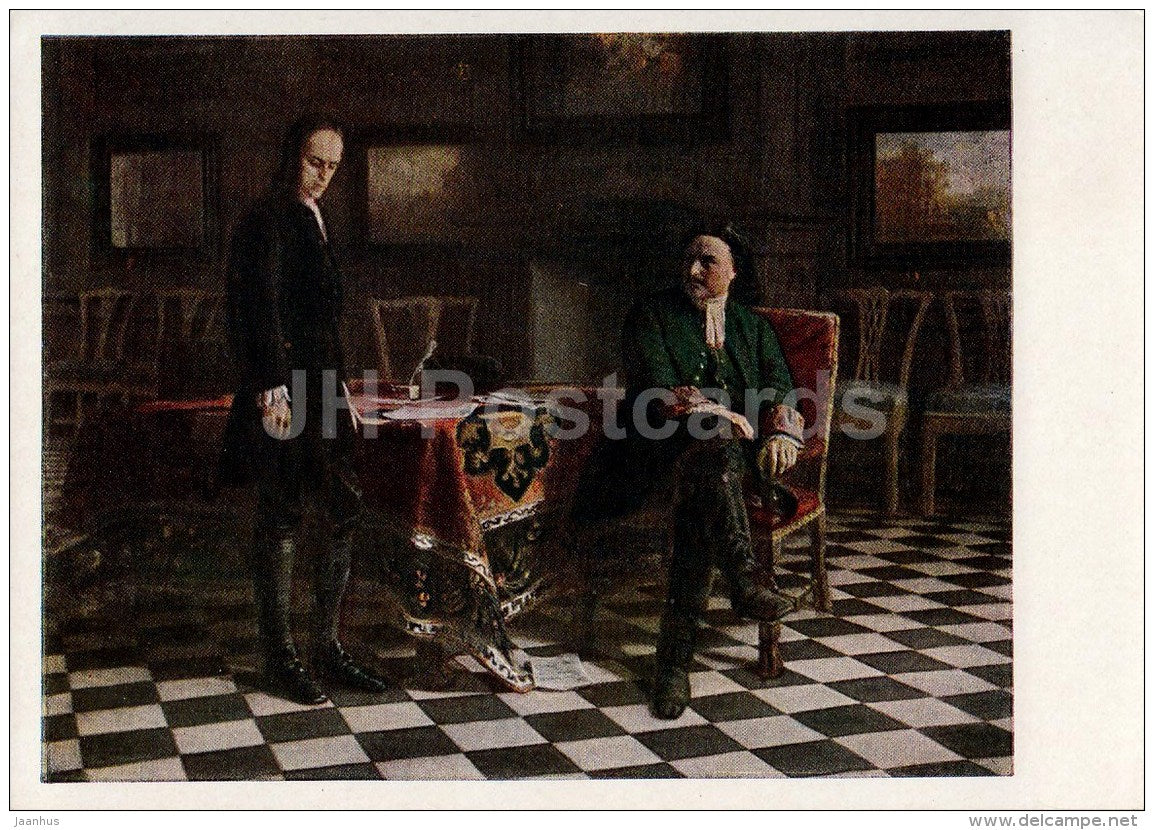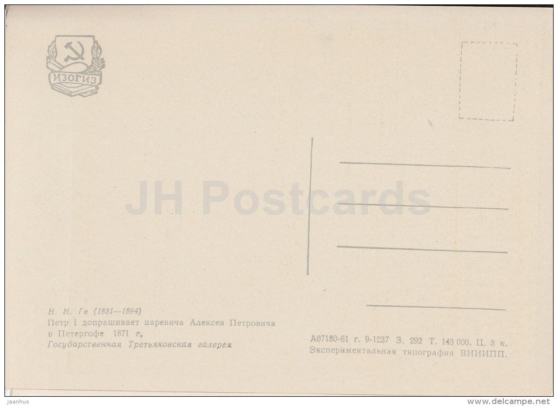 painting by N. Ge - 1 - Peter I interrogates Tsarevich Alexei , 1871 - Russian art - 1961 - Russia USSR - unused