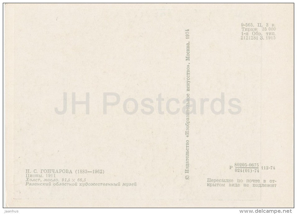 painting by N. Goncharova - Peonies , 1911 - flowers - Russian art - 1974 - Russia USSR - unused