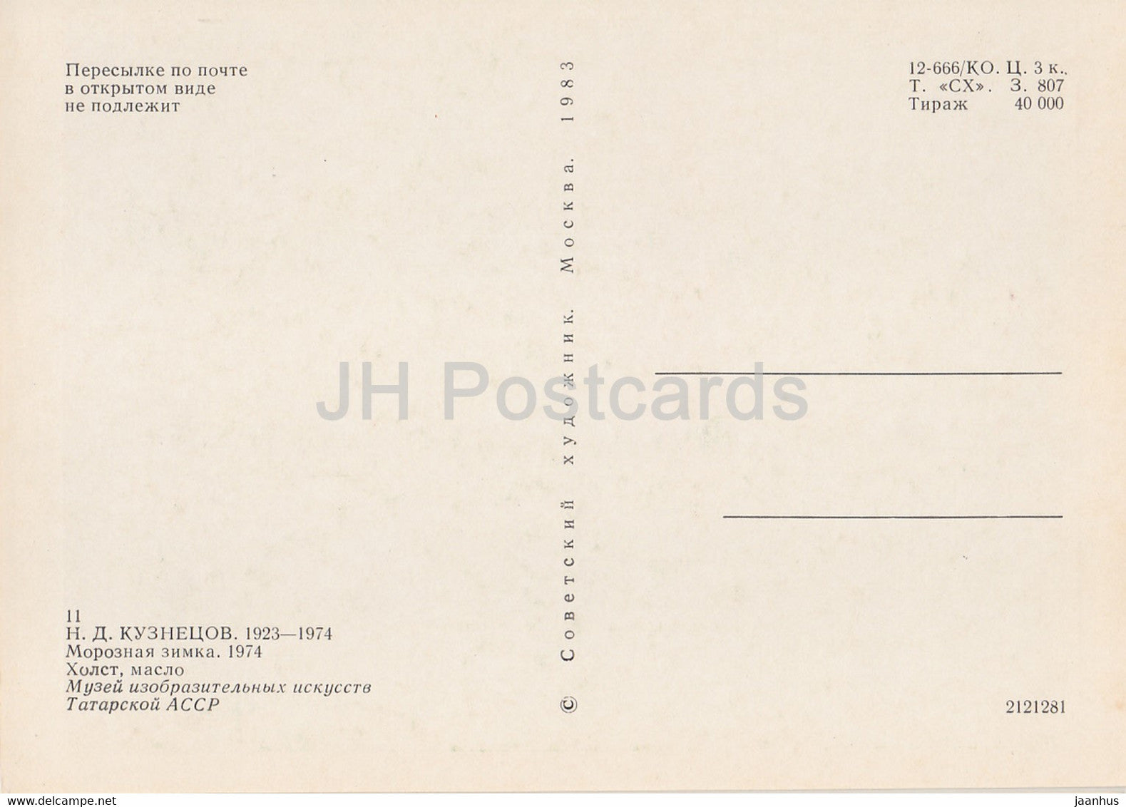 painting by N. Kuznetsov - frosty winter - industry - Tatar Russian art - 1983 - Russia USSR - unused