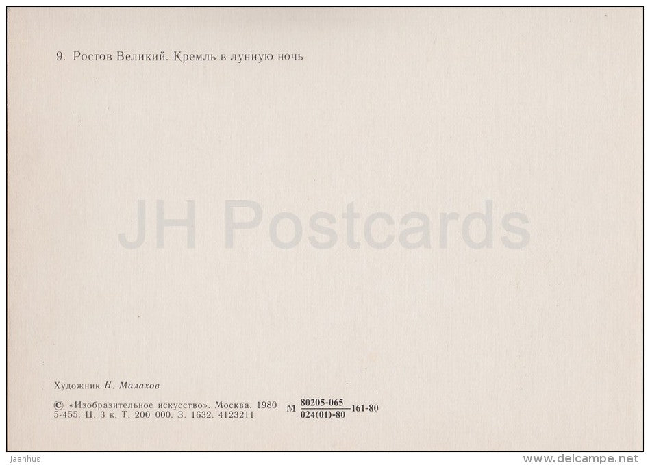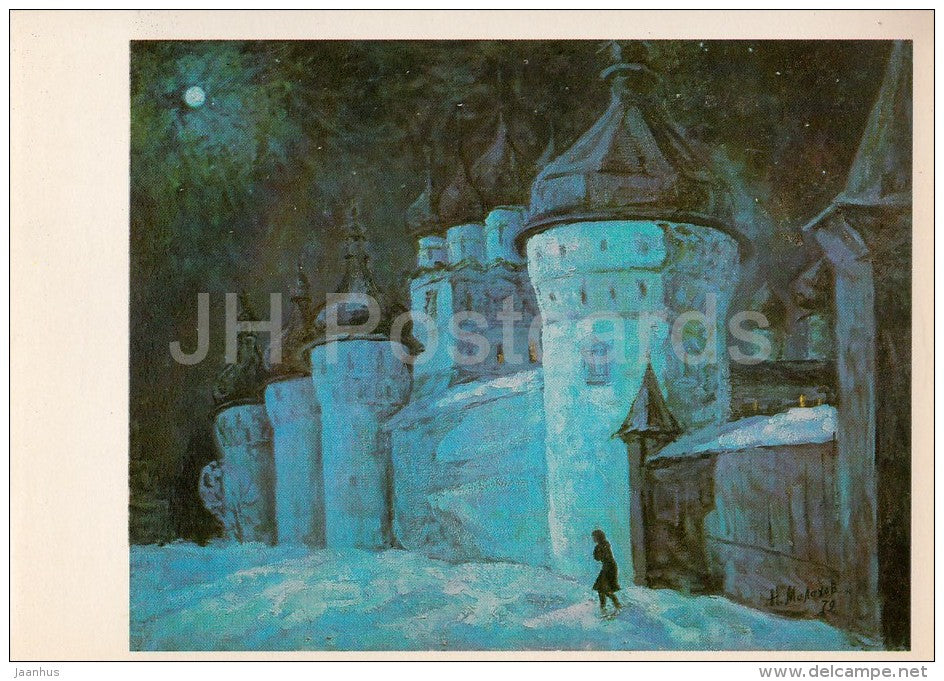 painting by N. Malakhov - Rostov Veliky . Kremlin in the moonlit night - Russian art - Russia USSR - 1980 - unused