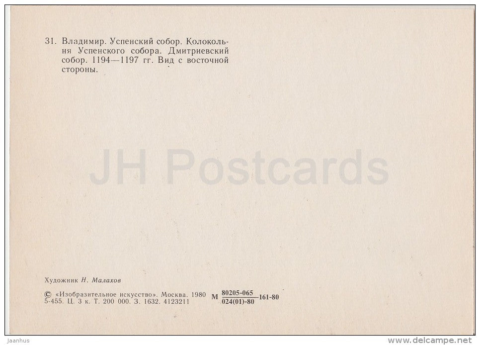painting by N. Malakhov - Vladimir . Dmitriev Cathedral . Belfry - Russian art - Russia USSR - 1980 - unused