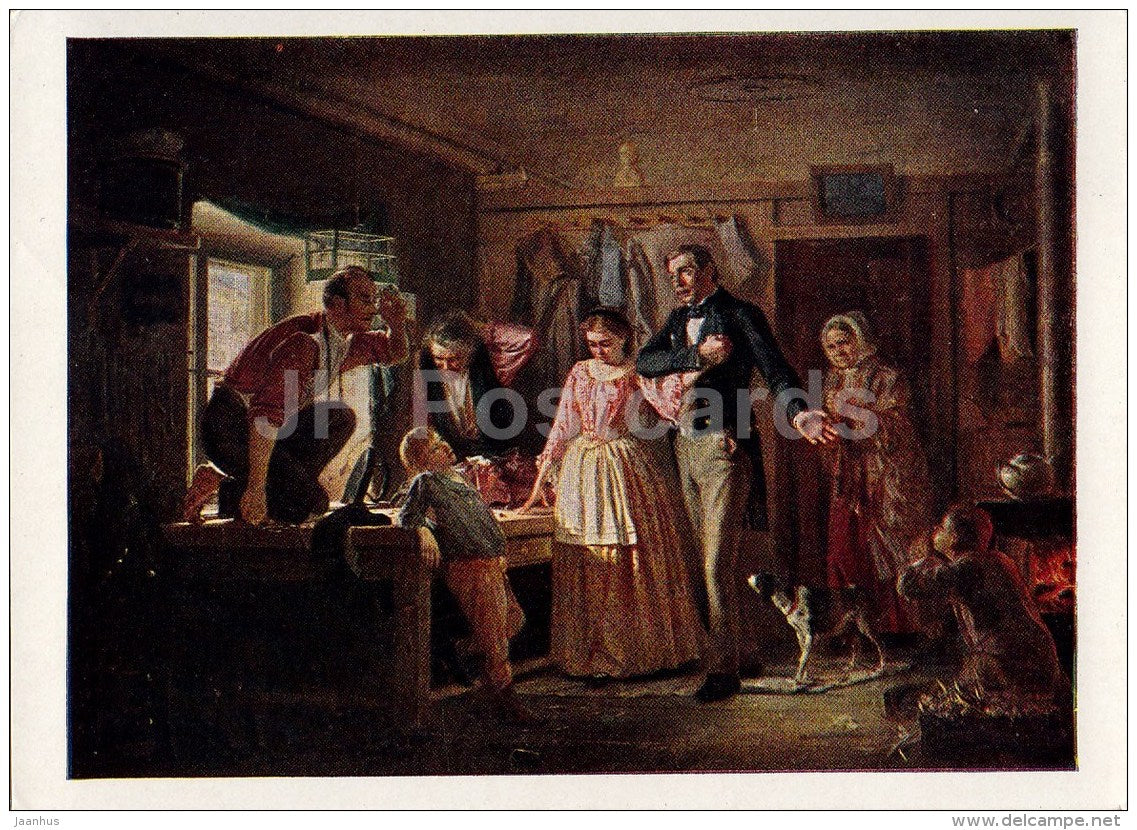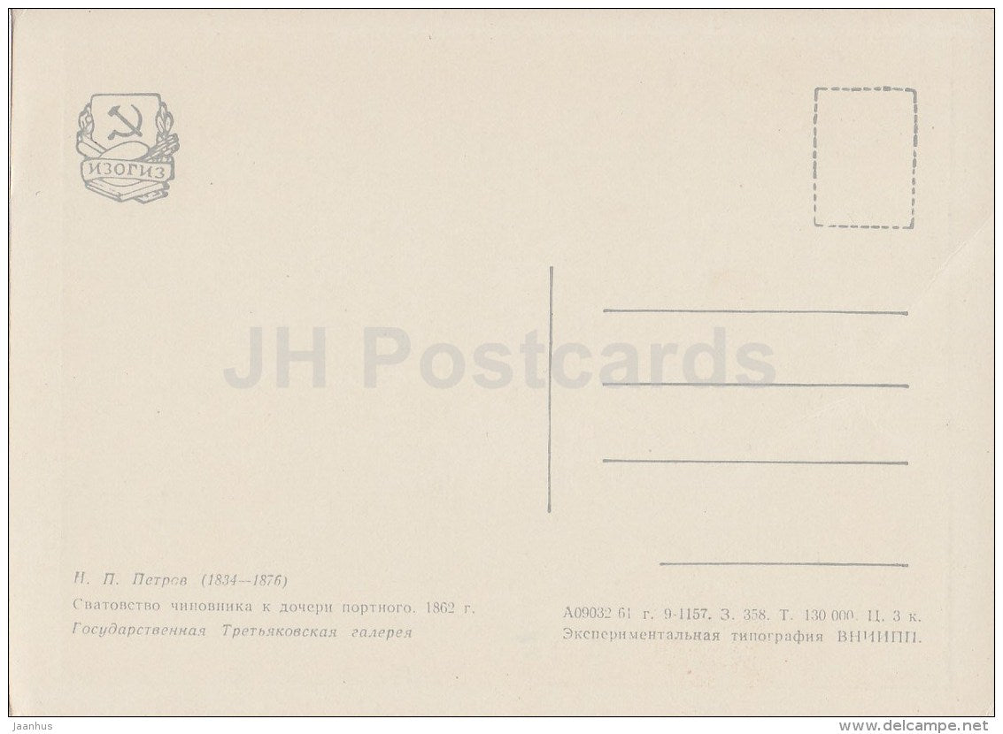 Painting by N. Petrov - Matchmaking of a clerk to a tailor's daughter , 1862 - Russian art - Russia USSR - 1961 - unused