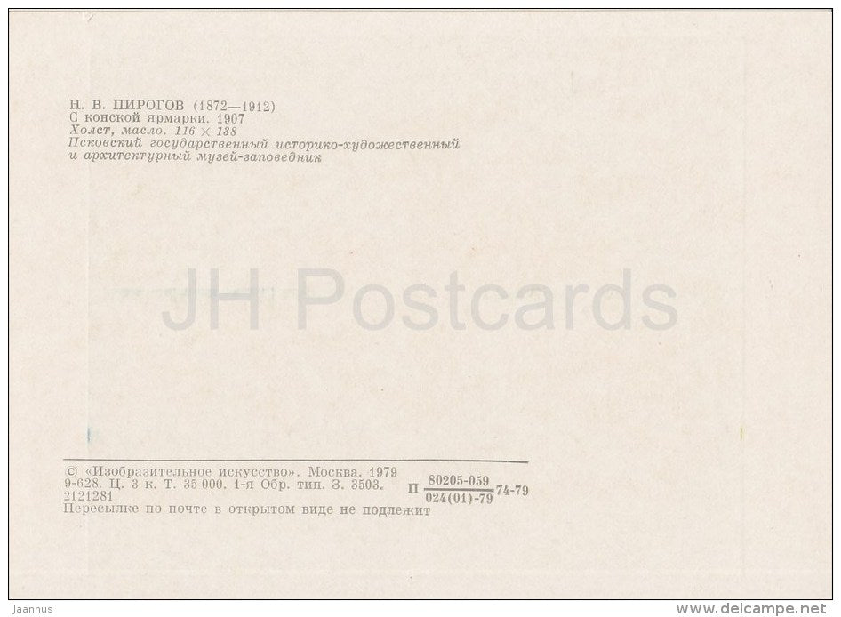 painting by N. Pirogov - From the horse fair , 1907 - Russian art - 1979 - Russia USSR - unused