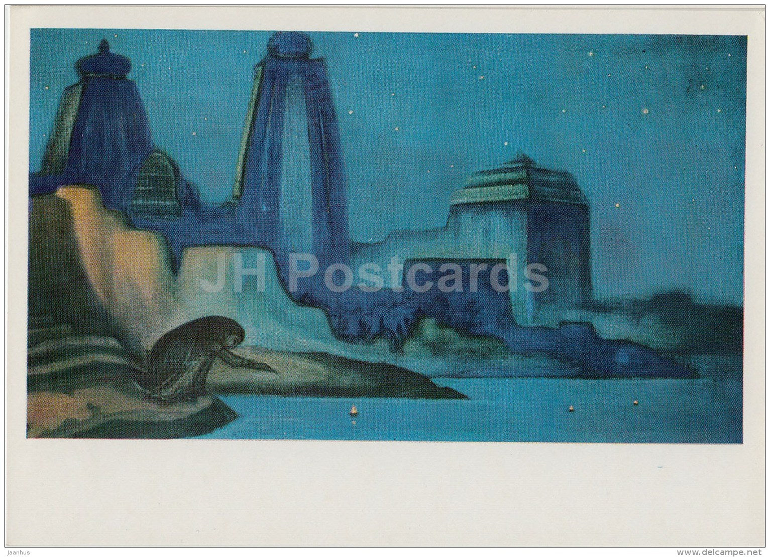 painting by N. Roerich - Lights on the Ganges , 1947 - Russian art - 1970 - Russia USSR - unused