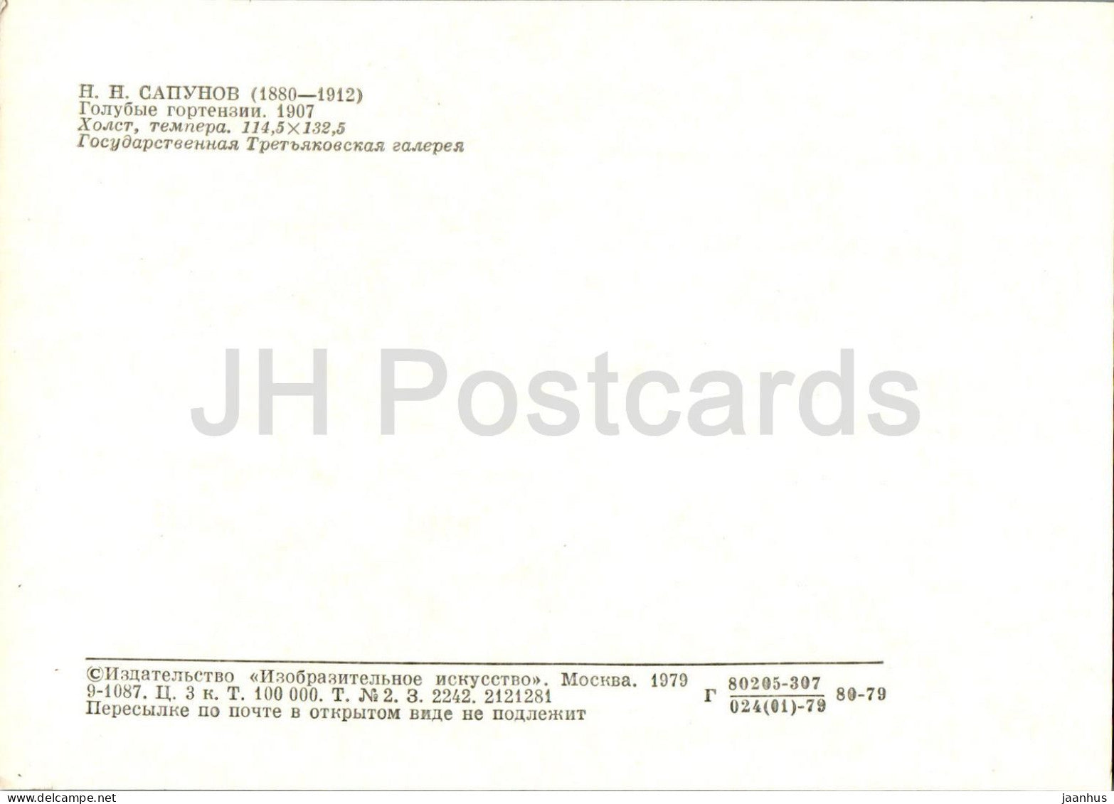 painting by N. Sapunov - Blue hydrangeas - flowers - Russian art - 1979 - Russia USSR - unused