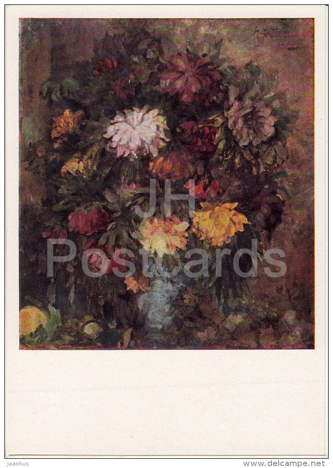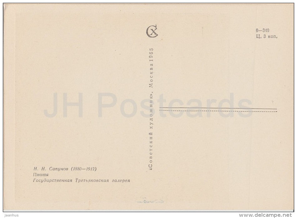 painting by N. Sapunov - Peonies - flowers - vase - Russian art - 1965 - Russia USSR - unused