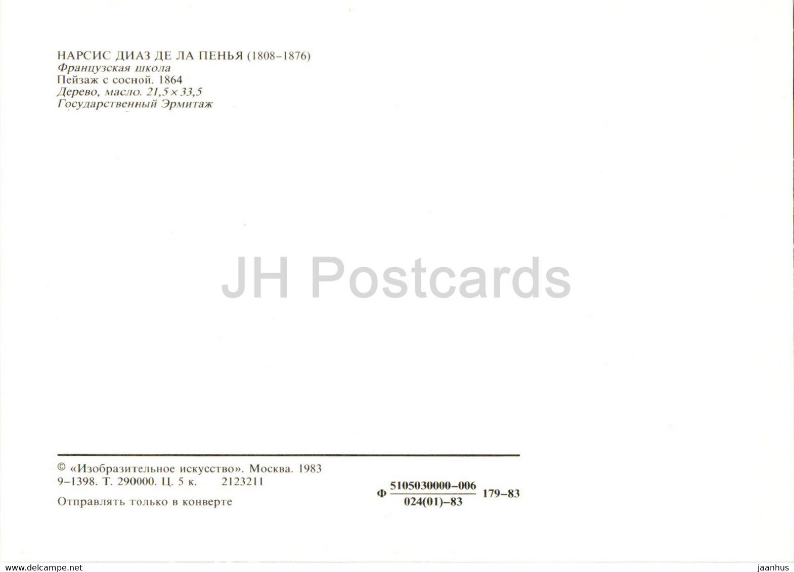 painting by Narcisse Virgile Diaz de la Pena - Landscape with Pine tree - French art - 1983 - Russia USSR - unused