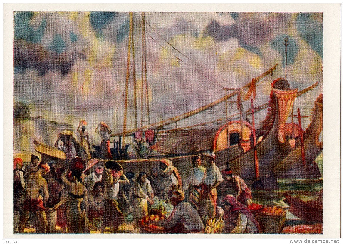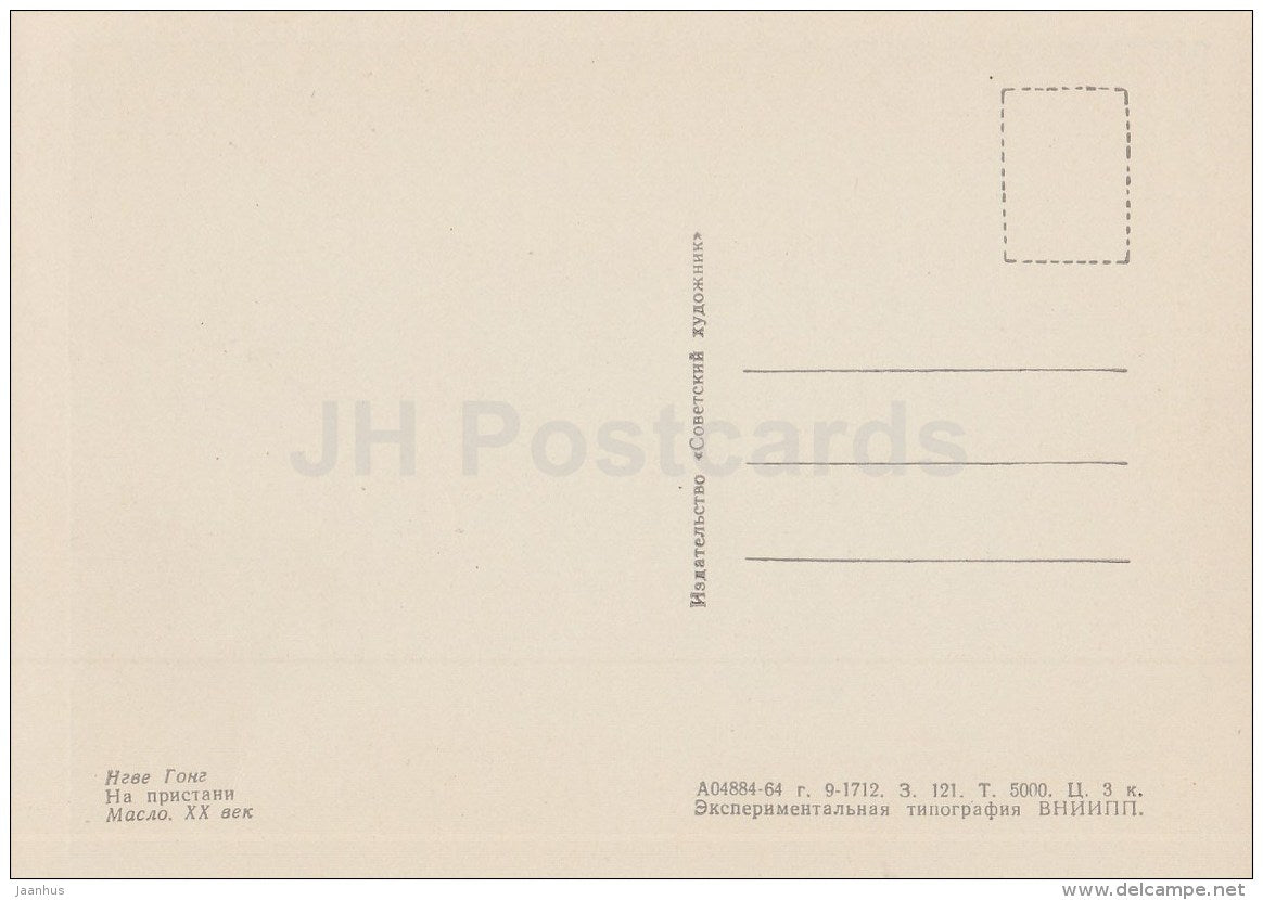 painting by Ngve Gong - On the Pier - boat - Burmese Art - 1964 - Russia USSR - unused