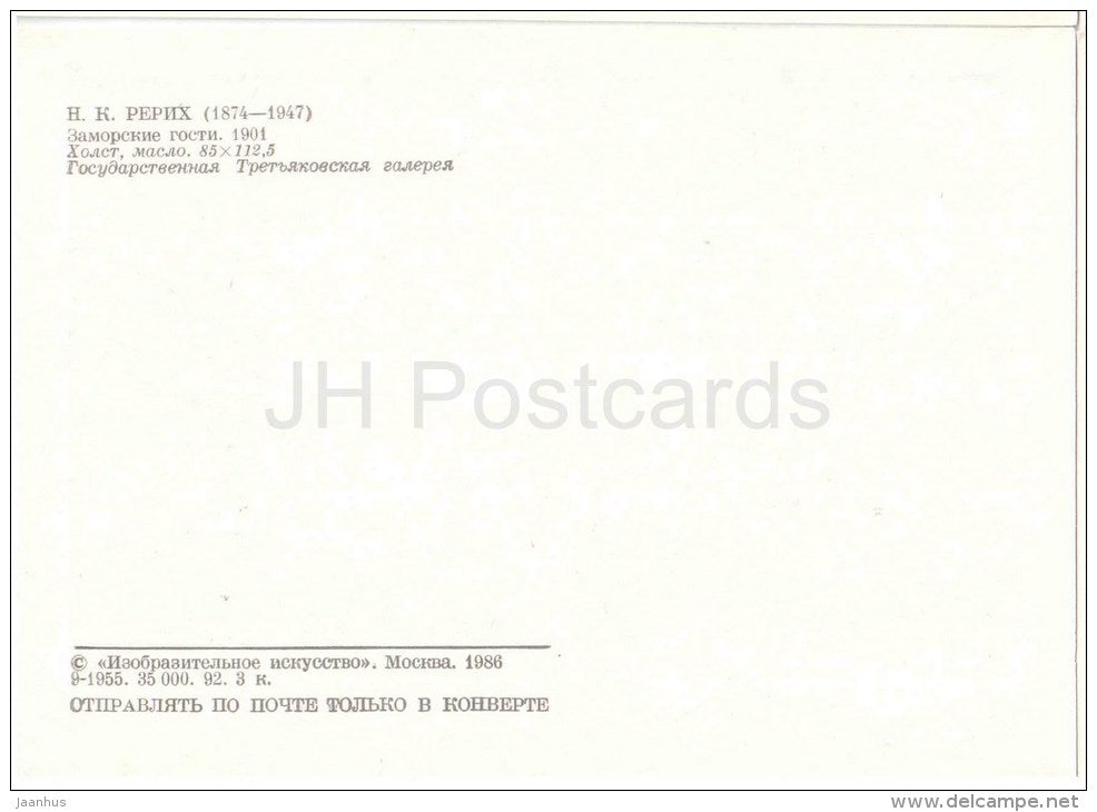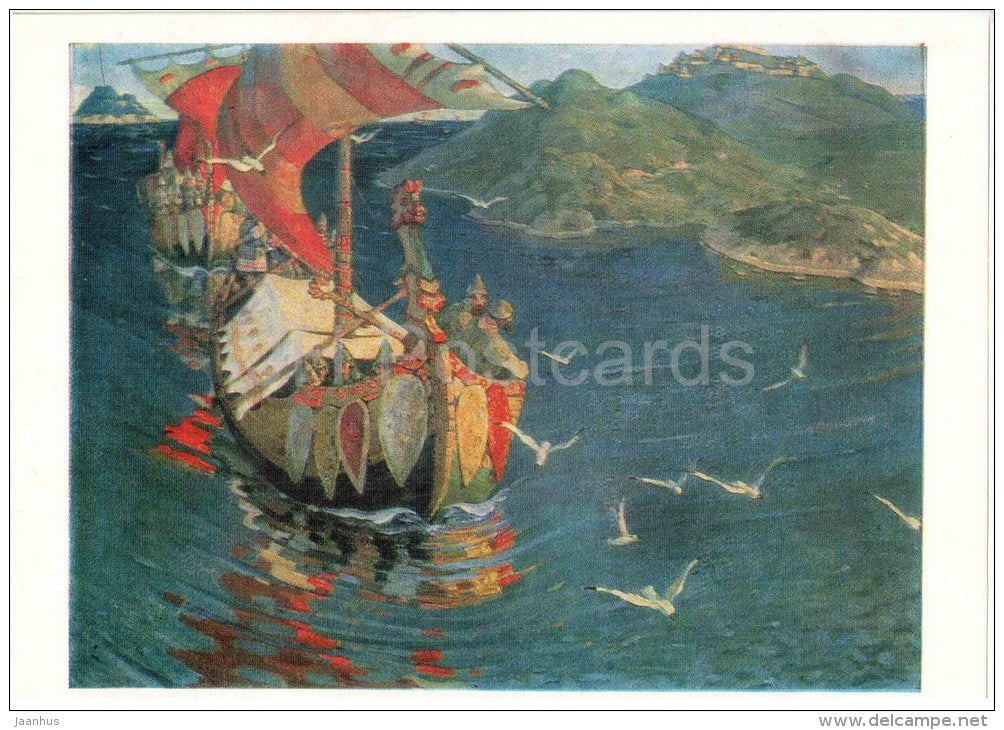painting by Nicholas Roerich - Overseas visitors , 1901 - sailing ship - russian art - unused