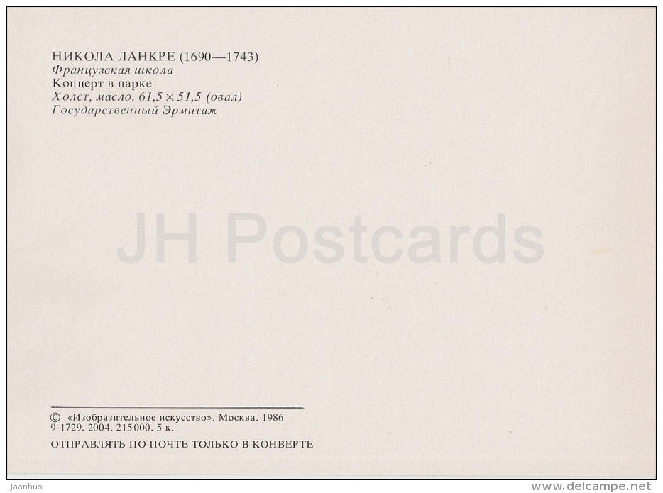 painting by Nicolas Lancret - Concert in the Park - French art - Russia USSR - 1986 - unused