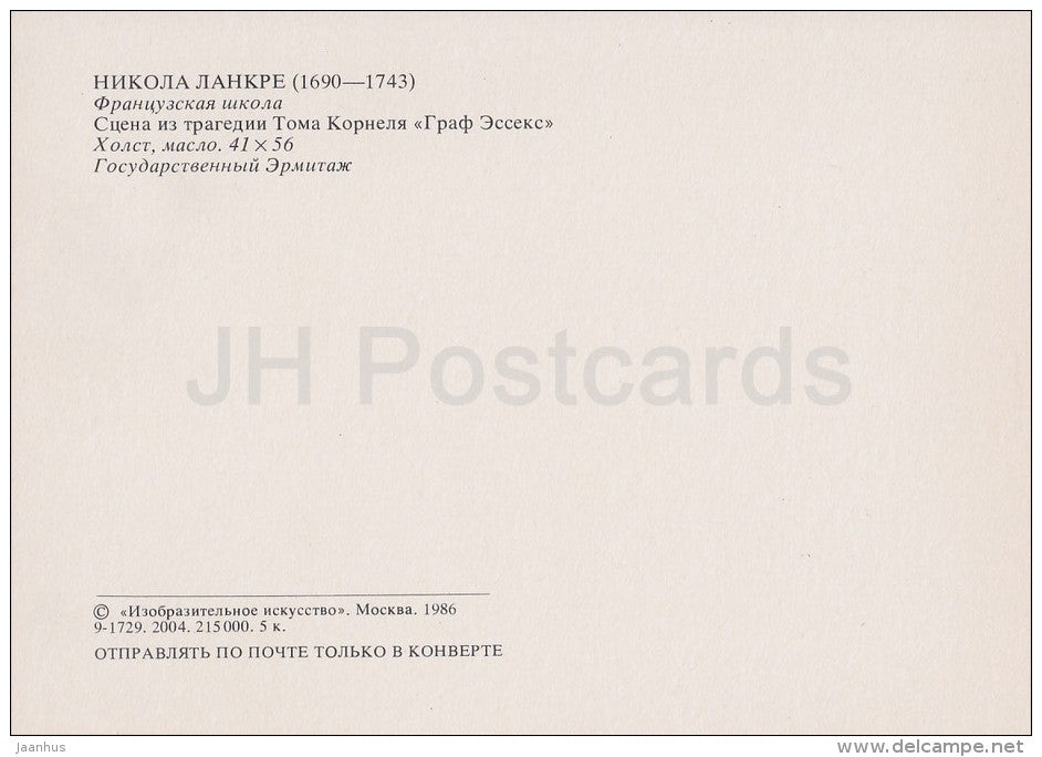 painting by Nicolas Lancret - Scene from the Tragedy Le Comte d'Essex - French art - Russia USSR - 1986 - unused