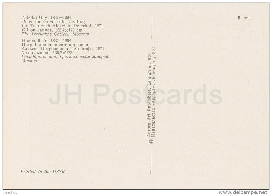 painting by Nikolai Gay - Peter the Great Interrogating Tsarevich Alexei - Russian art - Russia USSR - 1982 - unused