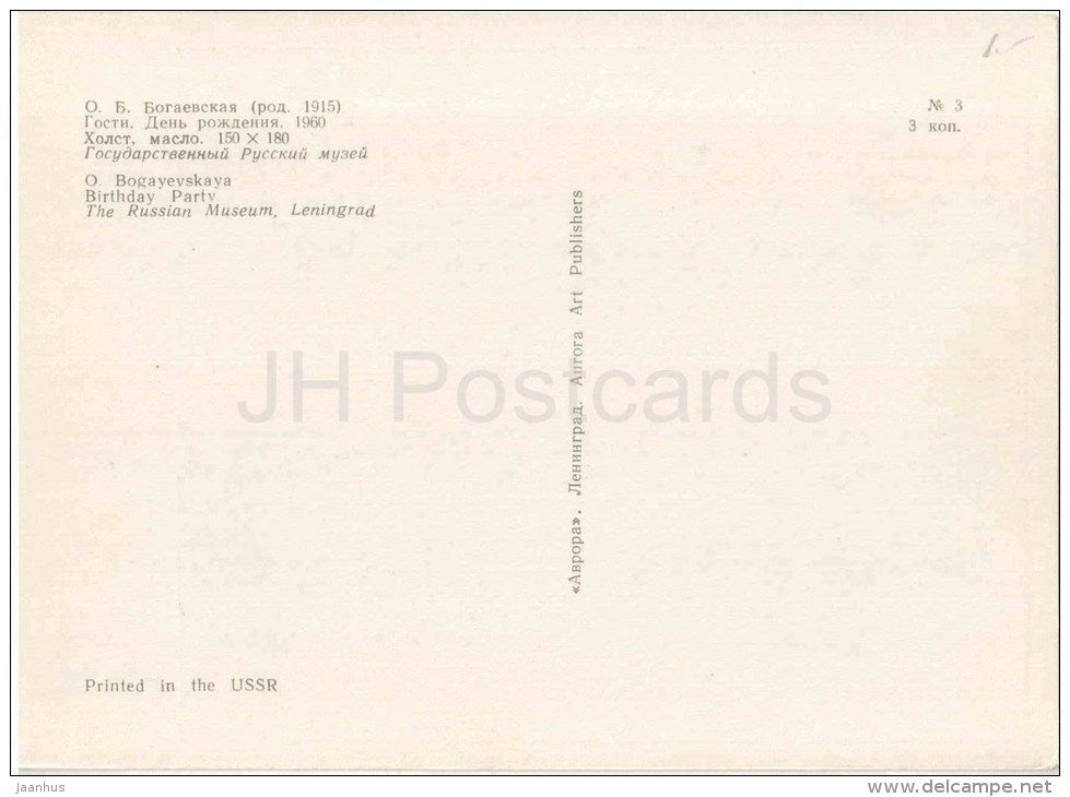 painting by O. Bogayevskaya - Guests , 1960 - children birthday - russian art - unused
