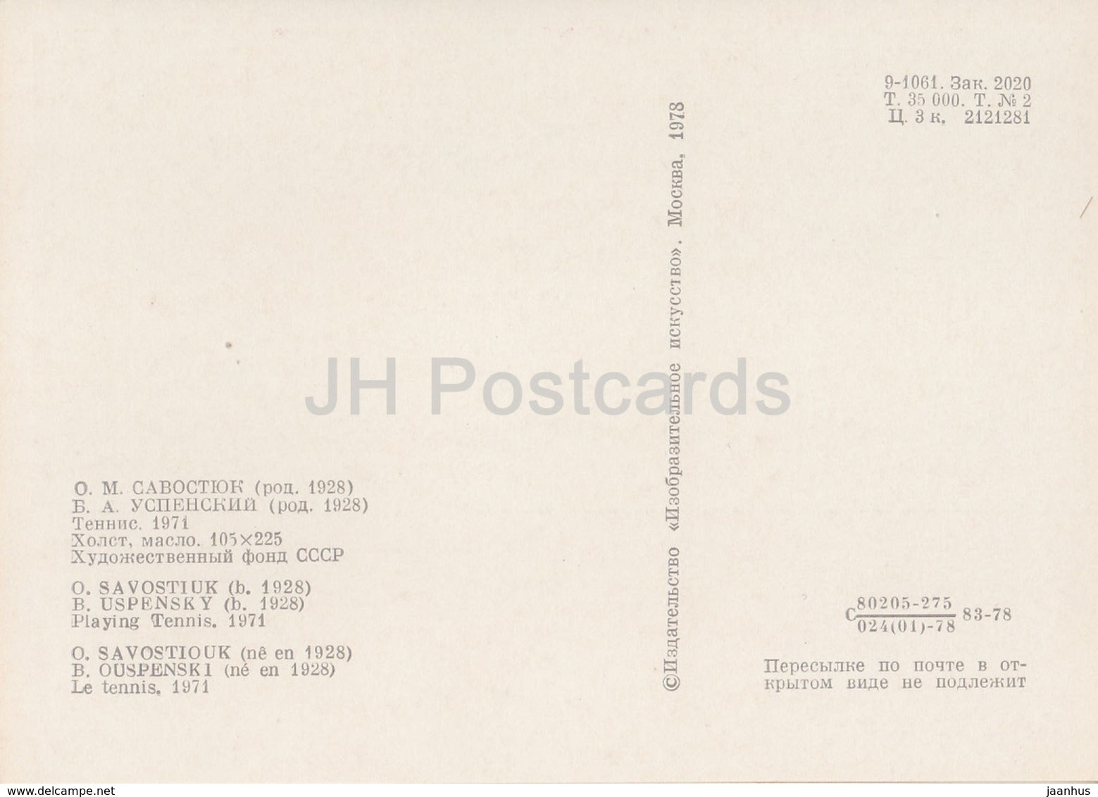 painting by O. Savostyuk - Playing Tennis - sport - Soviet art - 1978 - Russia USSR - unused