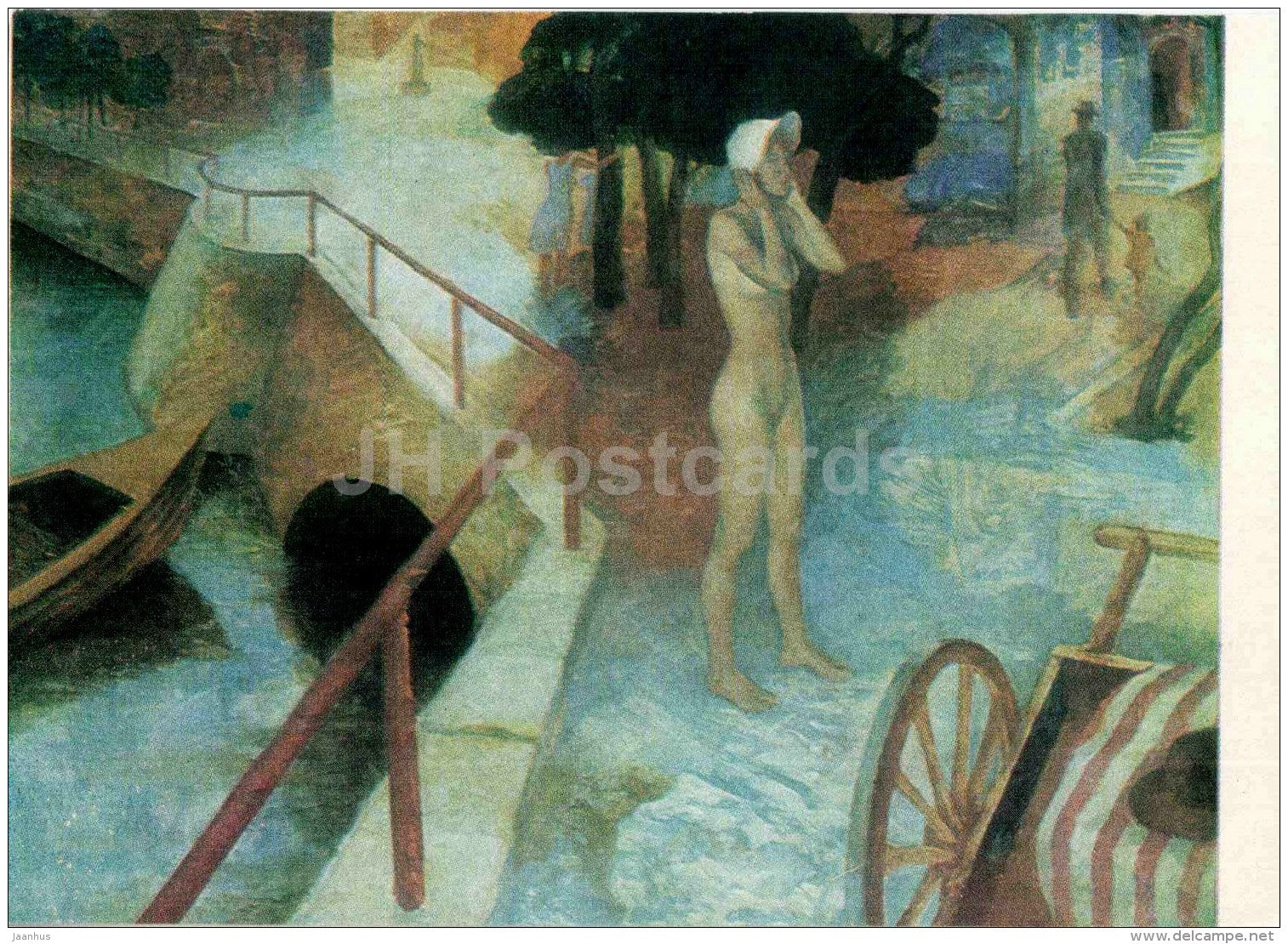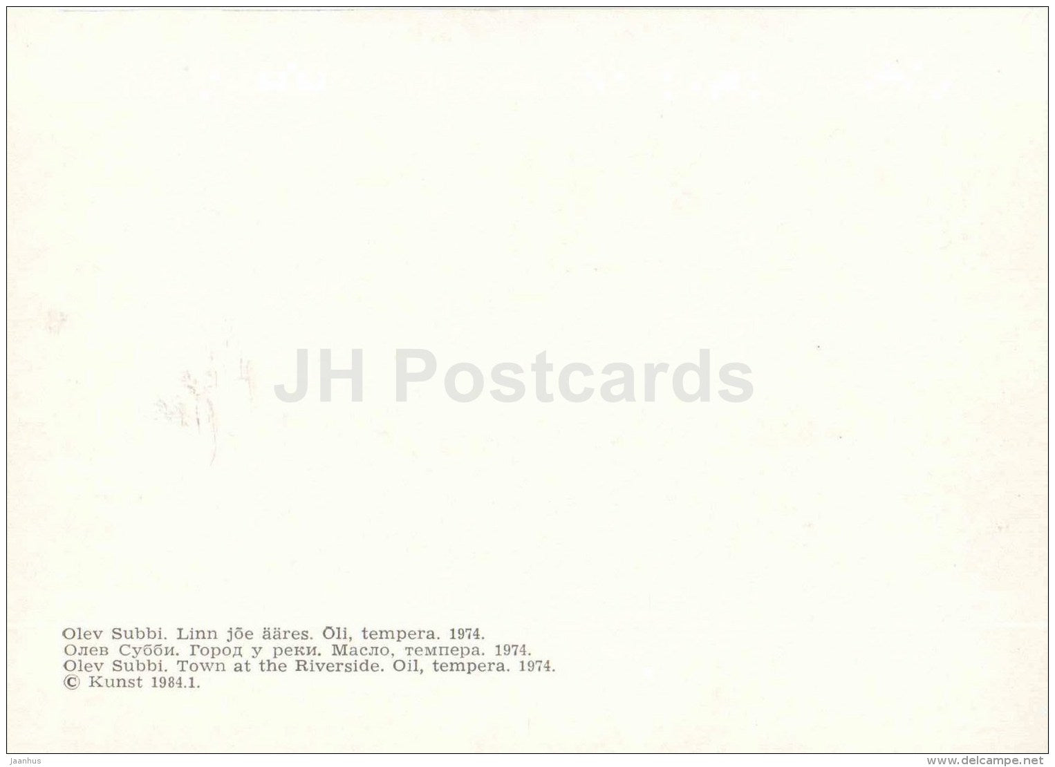 painting by O. Subbi - Town at the Riverside , 1974 - nude woman - estonian art - Estonia USSR - 1984 - unused