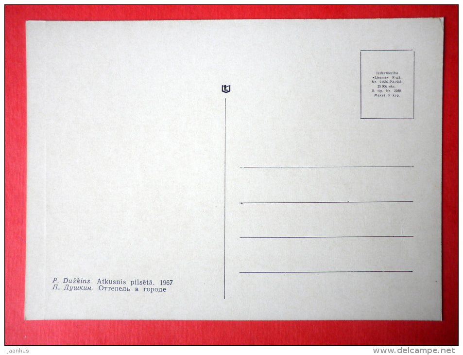 painting by P. Duskins - Thaw in the Town . 1967 - aquarelle - latvian art - unused