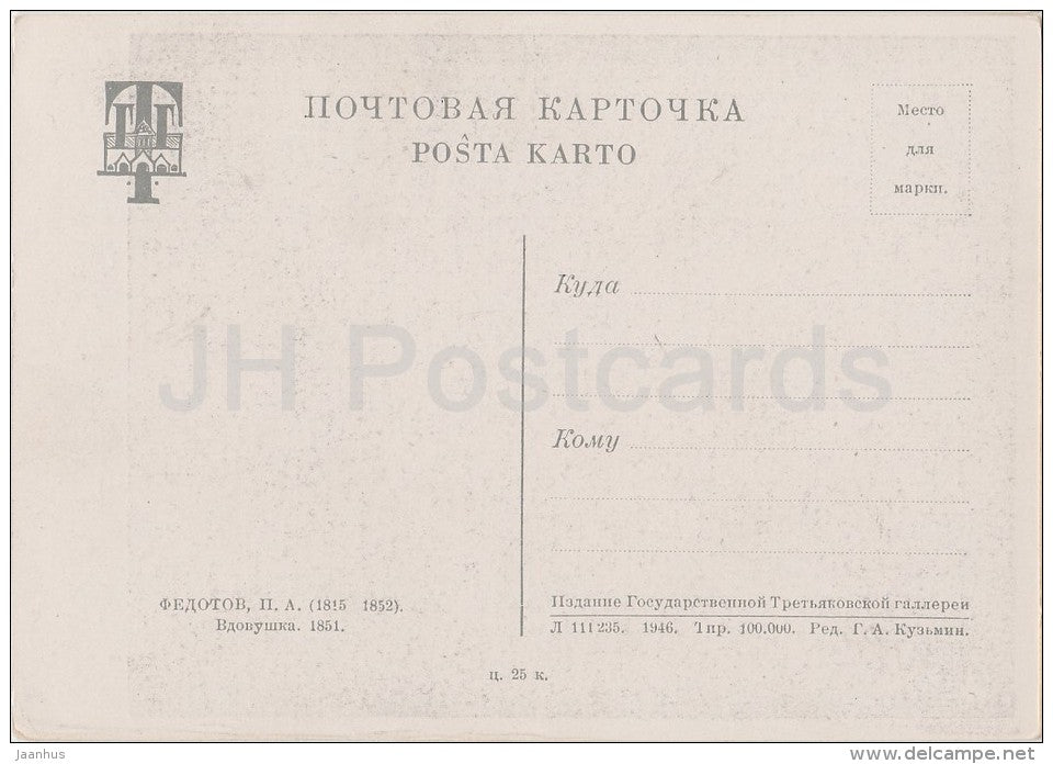 painting by P. Fedotov - Widow , 1851 - Russian art - 1946 - Russia USSR - unused