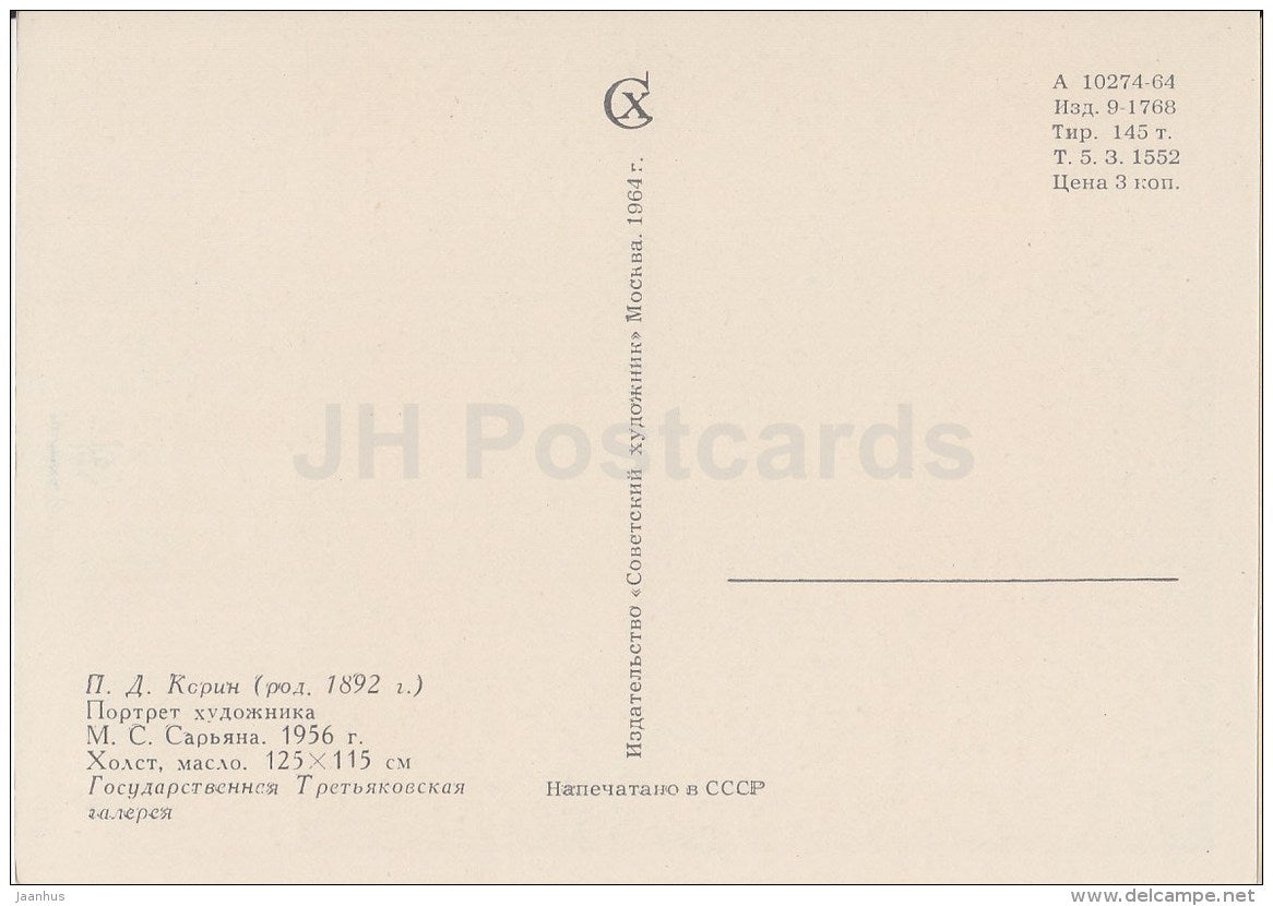 painting by P. Korin - Portrait of Armenian artit Saryan , 1956 - Russian Art - 1964 - Russia USSR - unused