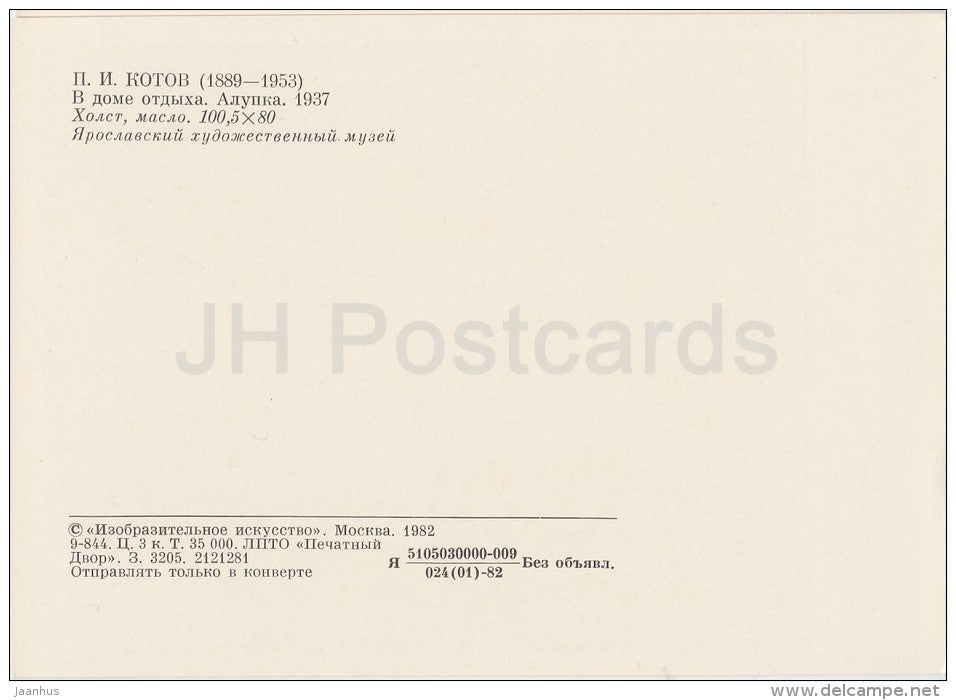 painting by P. Kotov - In the rest house . Alupka , 1937 - Russian art - Russia USSR - 1982 - unused