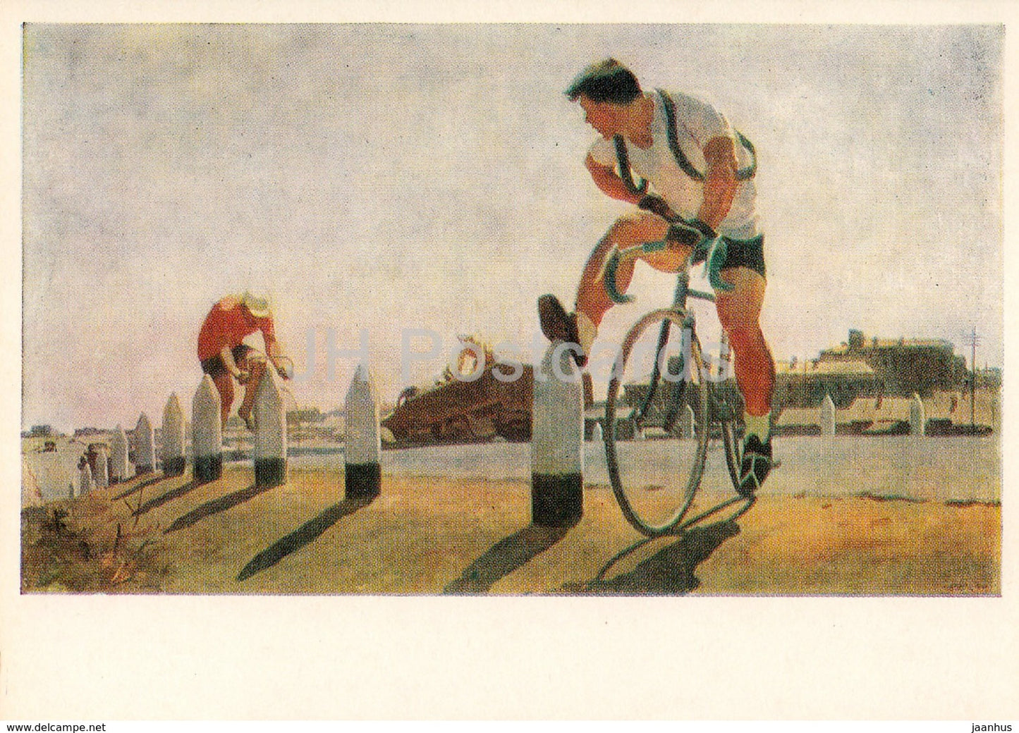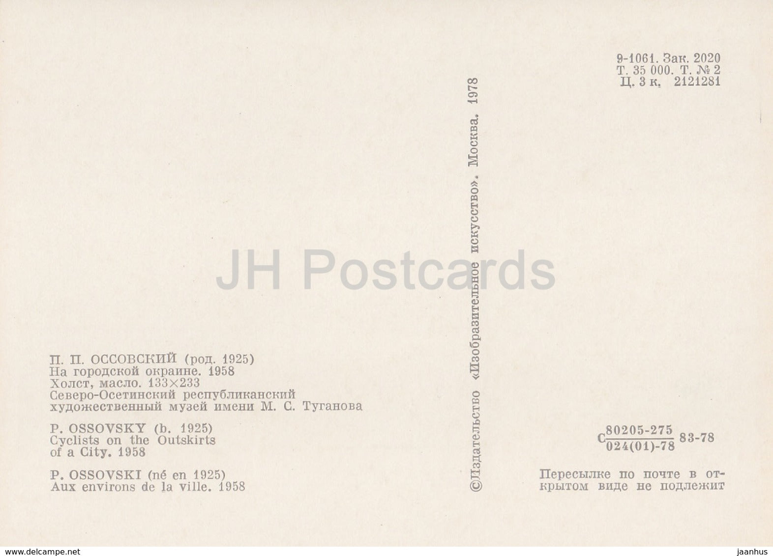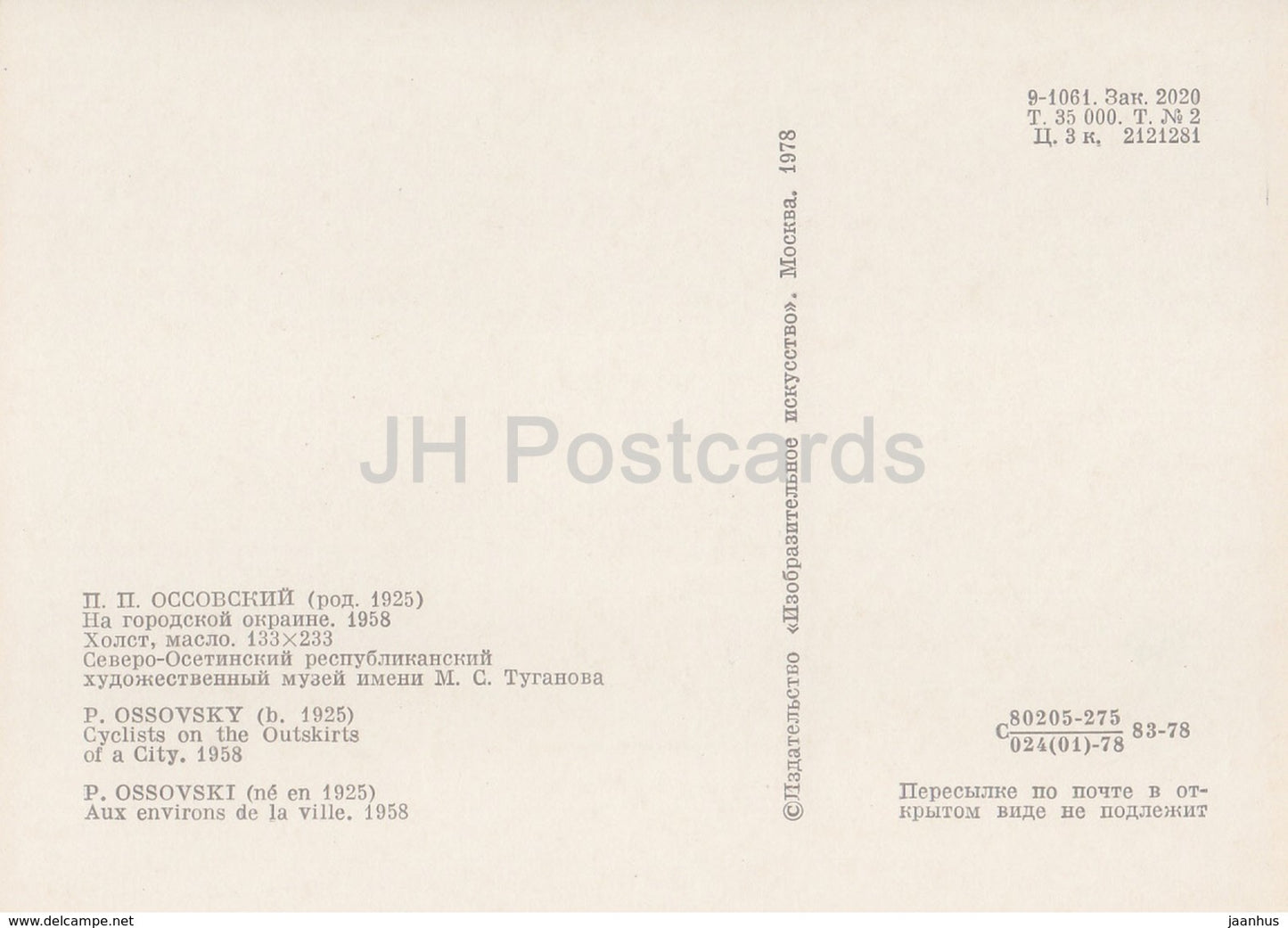 painting by P. Ossovsky - Cyclists on the Outskirts of a City - Sport - Soviet art - 1978 - Russia USSR - unused
