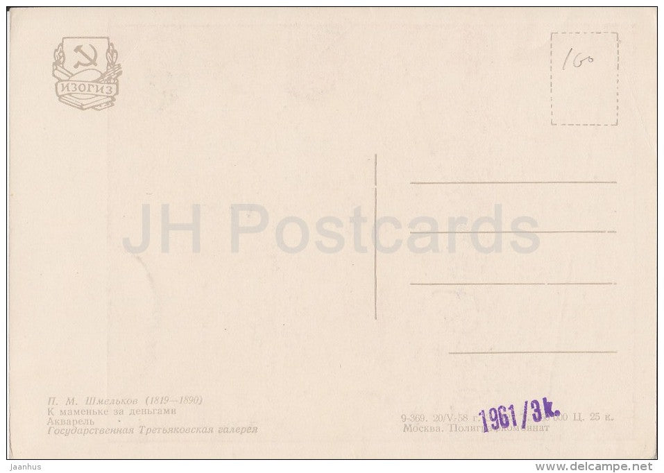 painting by P. Shmelkov - To mama for money - Russian art - 1958 - Russia USSR - unused