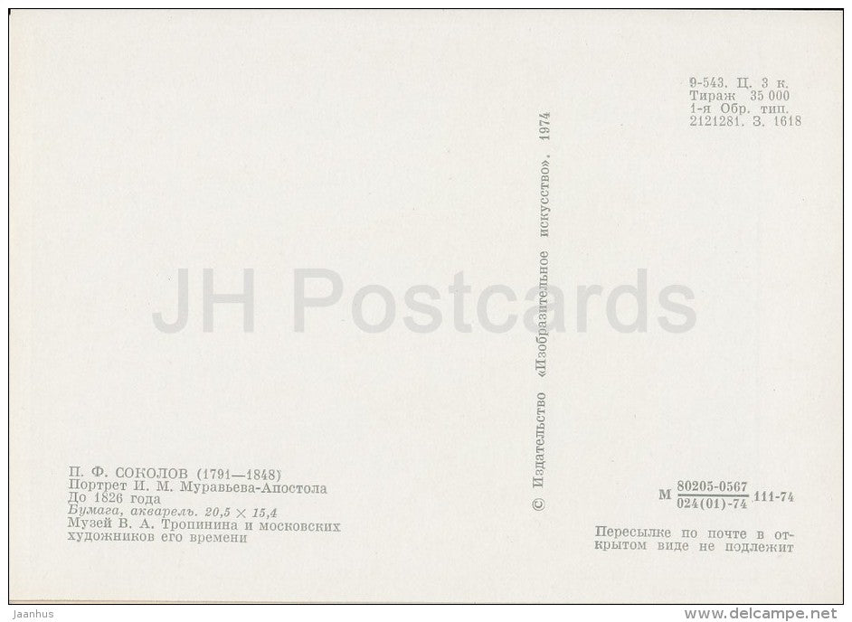 painting by P. Sokolov - Portrait of Murayev-Sokolov - Russian art - 1974 - Russia USSR - unused