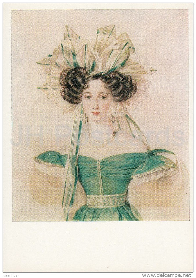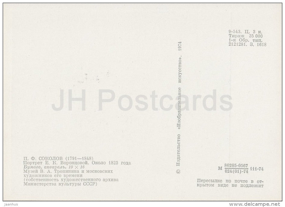 painting by P. Sokolov - Portrait of Y. Vorontsova - woman - Russian art - 1974 - Russia USSR - unused